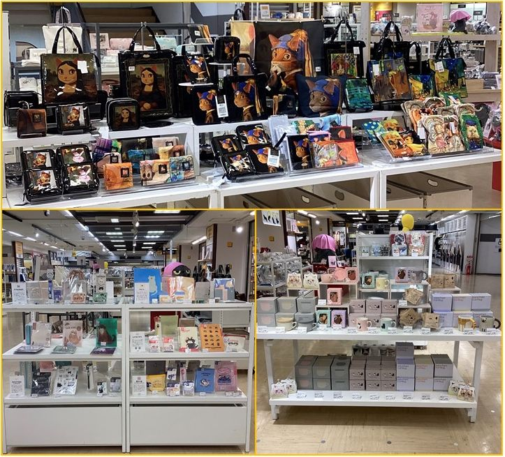 日々の暮らしに取り入れやすいハンカチやバッグ、文房具など実用的なアイテム。ふと目に入るだけで癒されるぬいぐるみなど、猫の魅力満載のラインナップです。