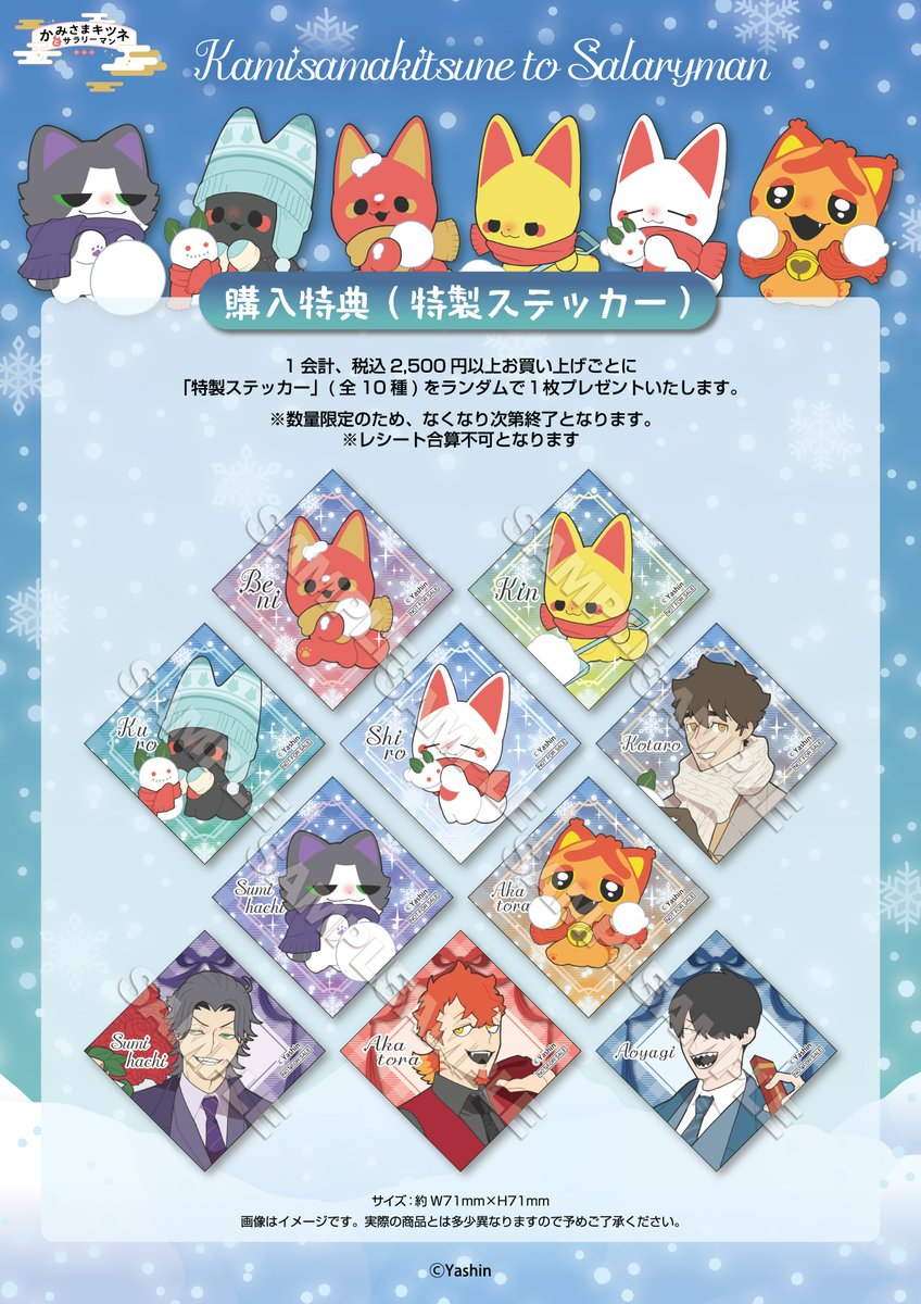 会期中、会場にてお1人さま1会計につき税込2,500円お買上げごとに『特製ステッカー』(全10種)をランダムで1枚プレゼントいたします。