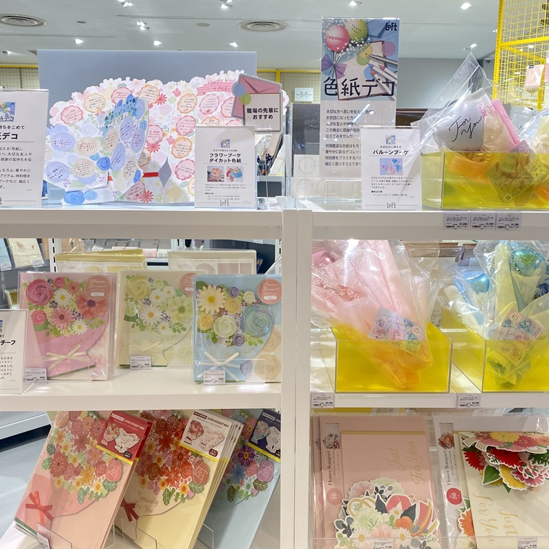 一宮ロフトでは、さまざまなデザインの色紙を種類豊富に取り揃えております。色紙を華やかに彩るデコレーションアイテム、特別感をプラスするバルーンブーケなどもあわせてご用意しております。