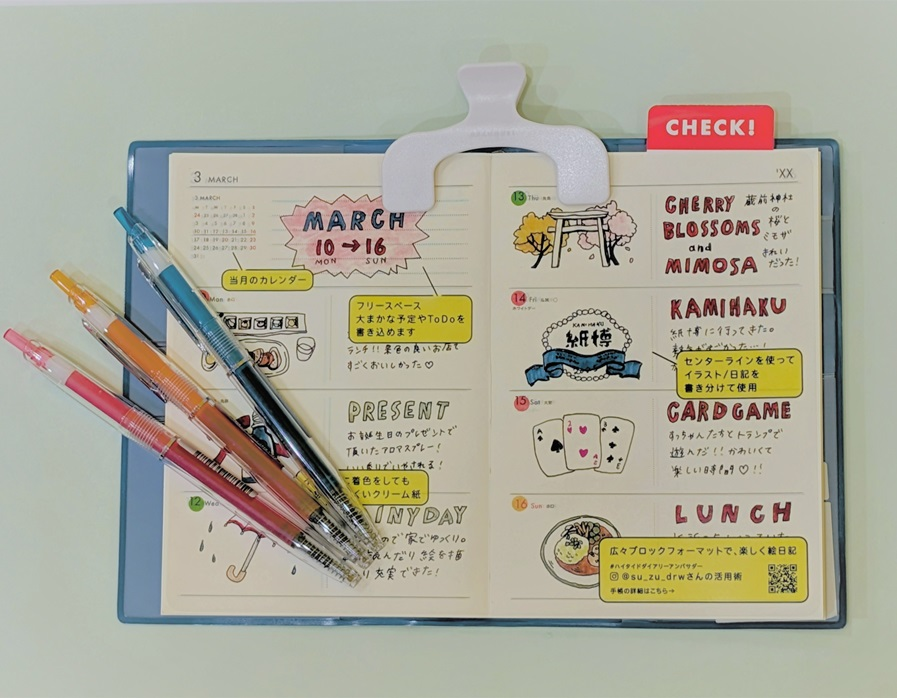 スタッフおすすめは、ポップな和柄イラストがかわいいハイタイドのニューレトロシリーズ。大きすぎないサイズ感と、書くスペースがちょうどいい初めてのログ生活にぴったりのダイアリーです!