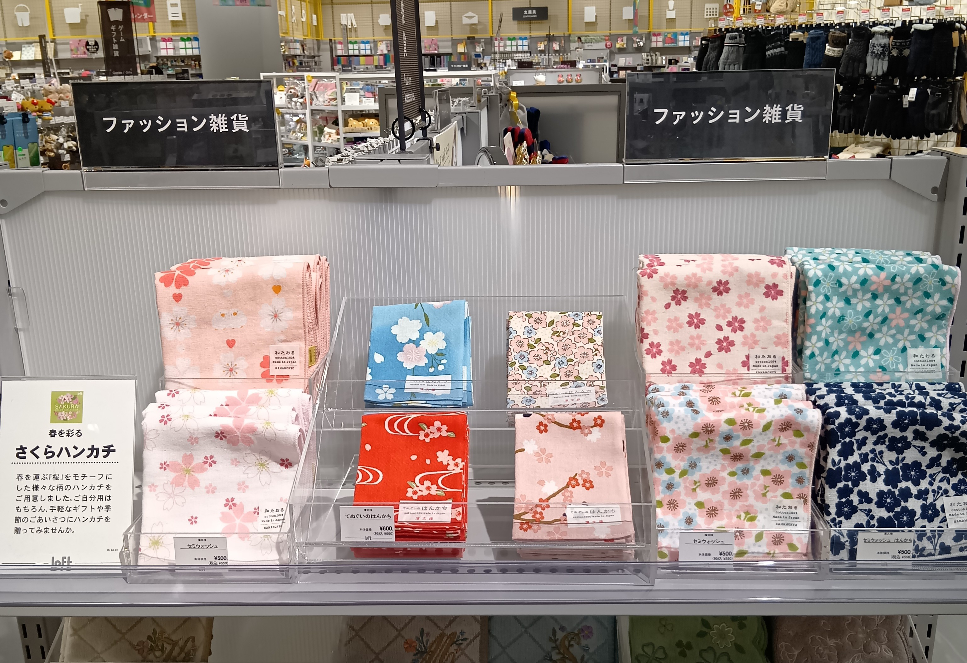 可愛らしいサクラのデザインのハンカチが入荷しましたのでご紹介します。