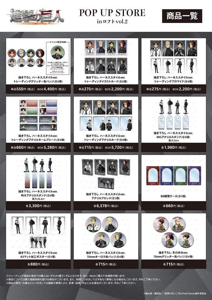 TVアニメ『進撃の巨人』POP UP STORE in ロフト vol.2を期間限定で開催!