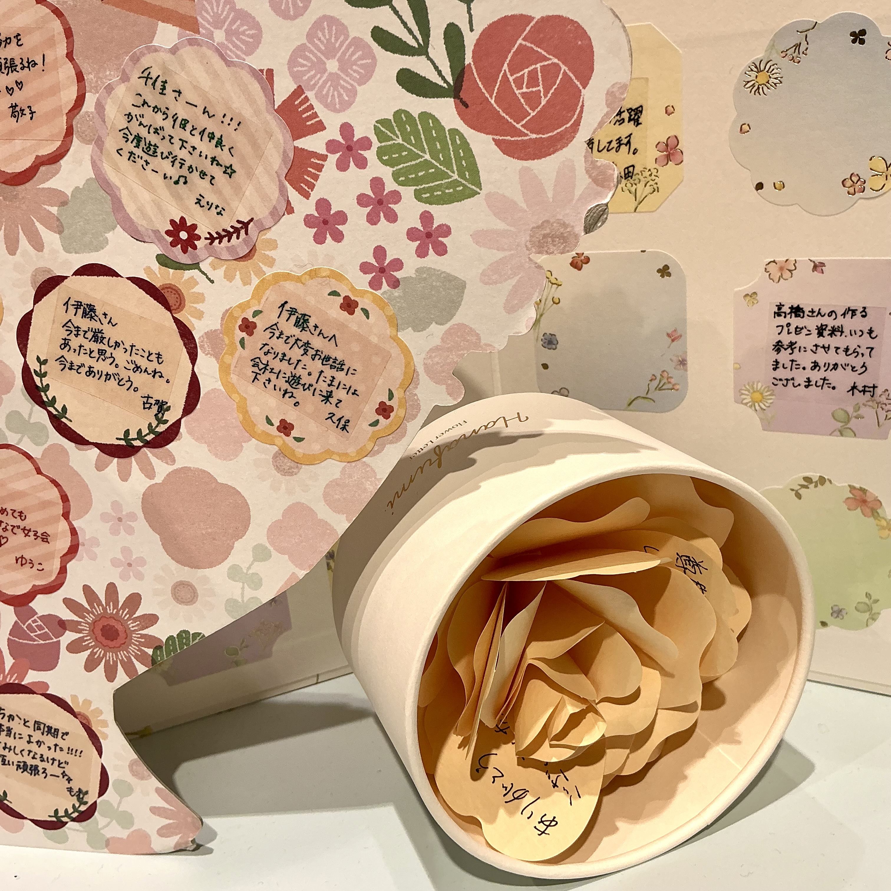 卒業や特別な日の思い出に、華やかなメッセージブーケや花びらのカードに書き込めるものなど、感謝の気持ちを形にする様々な色紙がそろいました。