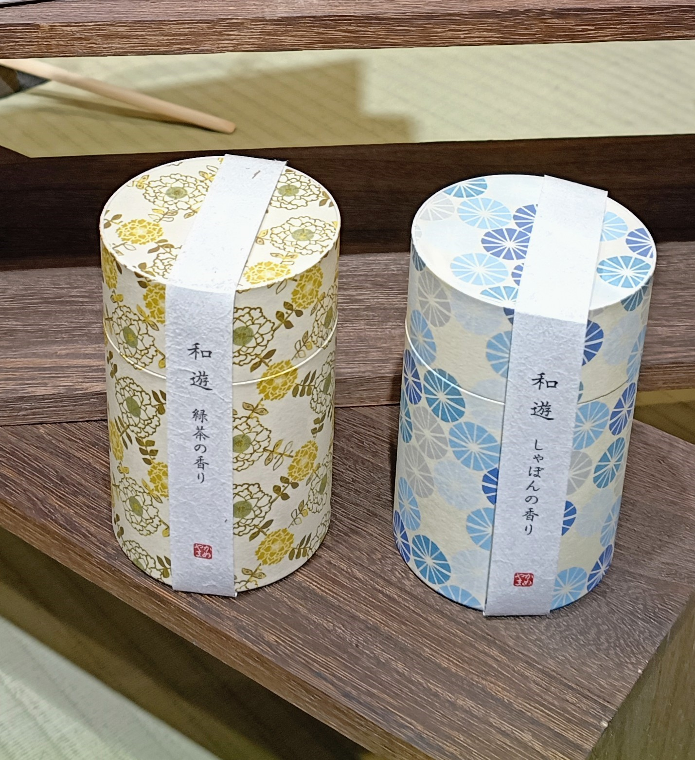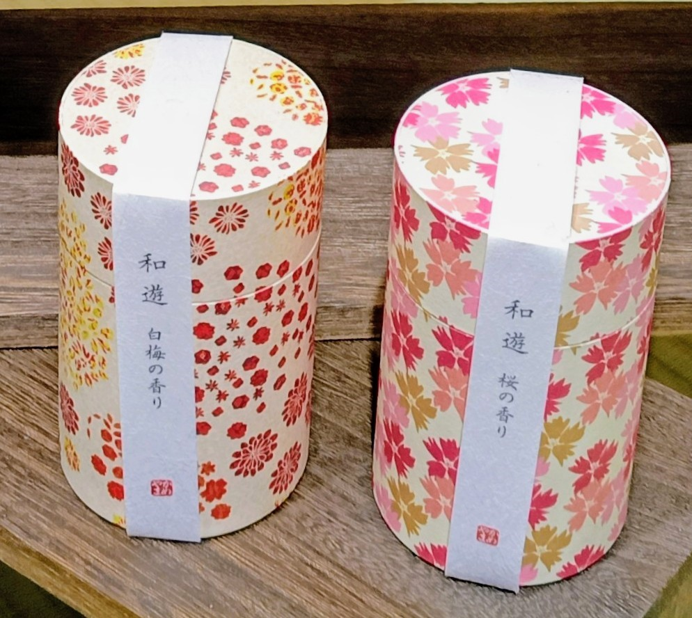 日々の暮らしに、遊び心と和心を取り入れることをコンセプトとした「和遊」。「春の香」の白梅や桜の香り、「癒しの香」の緑茶やしゃぼんの香りなどをそろえました。お部屋に置いて香りを楽しむのはもちろん、使用後のパッケージは帯や内箱を外すことで、和モダン柄の貼り箱としてもお楽しみいただけます。