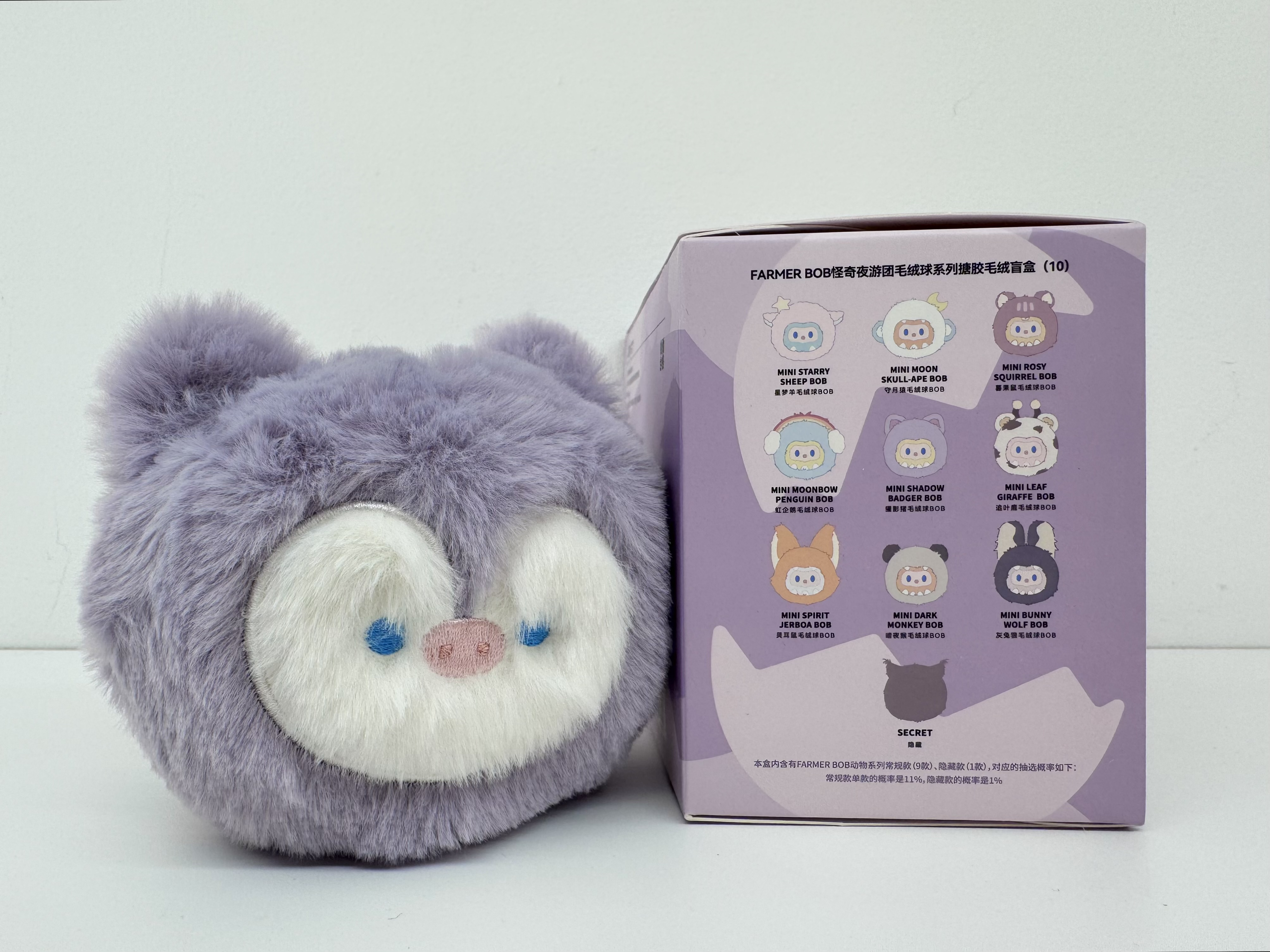 世界的に人気のデザイナーズトイ「FARMAR BOB」の丸型のぬいぐるみストラップ。表面は"夜行性の動物"に変身した、世界中を旅する農夫のBOB、裏面は動物の顔になっており、ふわふわとした触り心地が特徴です。9種類とシークレットから、何が出るかは開けてからのお楽しみです。
