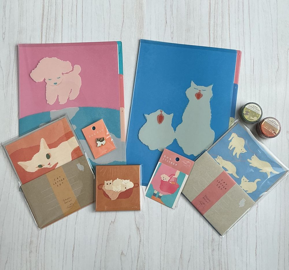 猫と犬をモチーフに、16名のクリエイターが描くさまざまなアイテムを取りそろえております。
