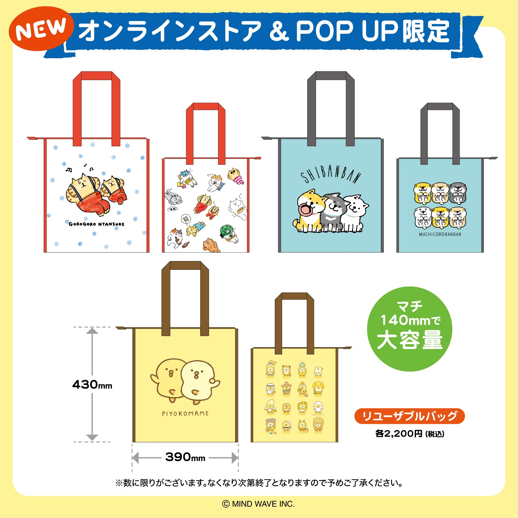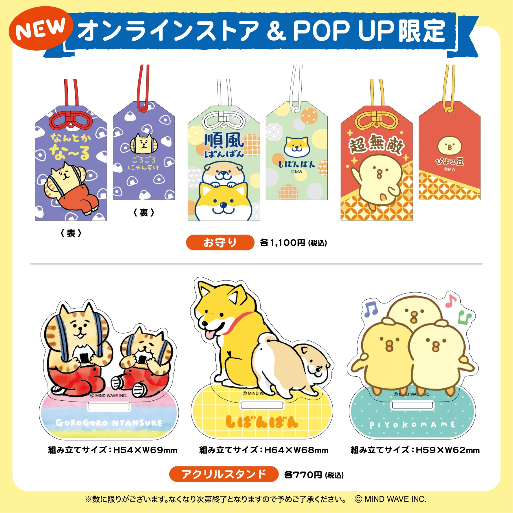 今回は3月7日(土)より開催する「マインドウェイブキャラクターショップ」の商品をひと足先にご紹介いたします。