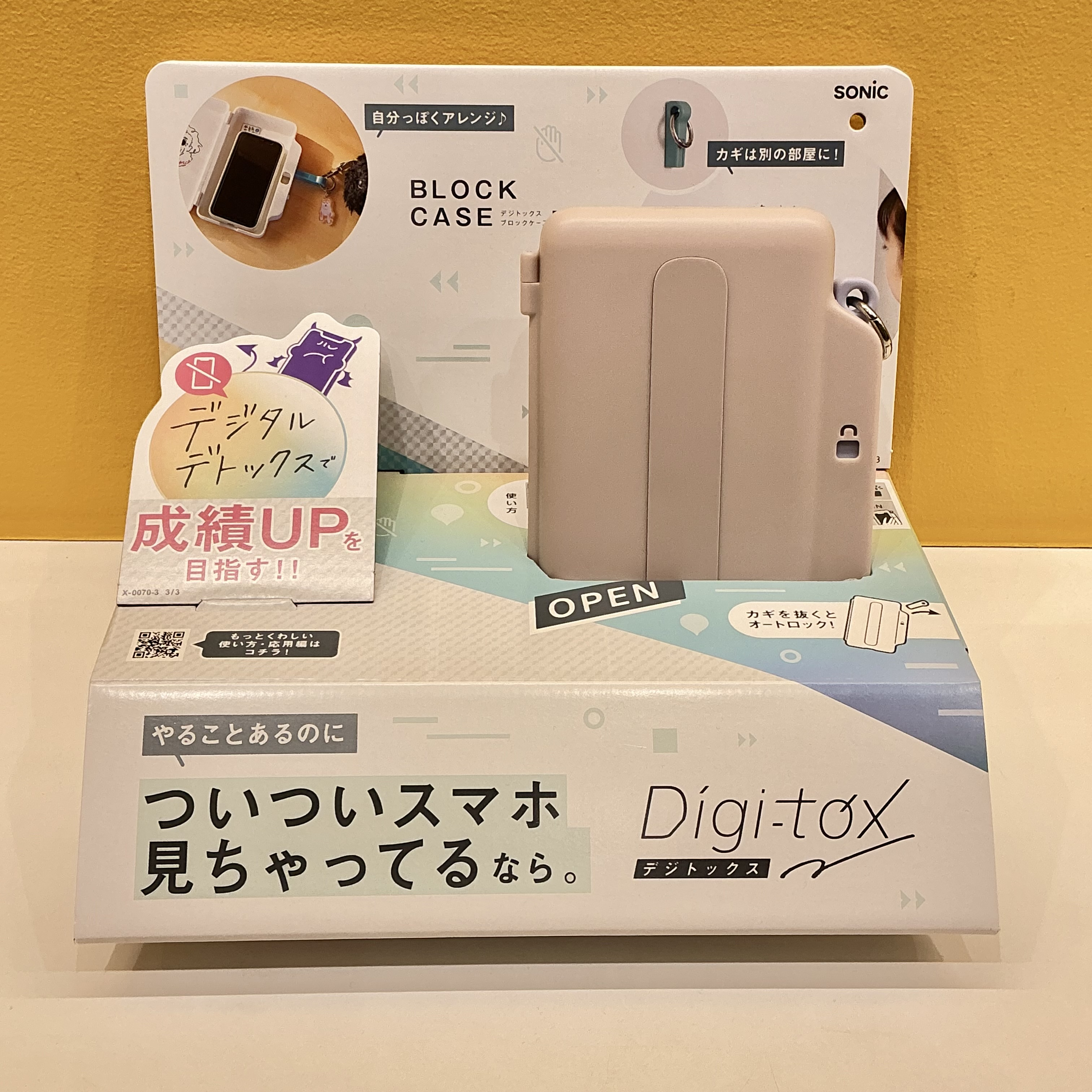 勉強や試験前、生活習慣を整えたい時にスマホをケースに入れて触れない時間を作ります。やりたい事が終わったら、鍵をさしてオープン!