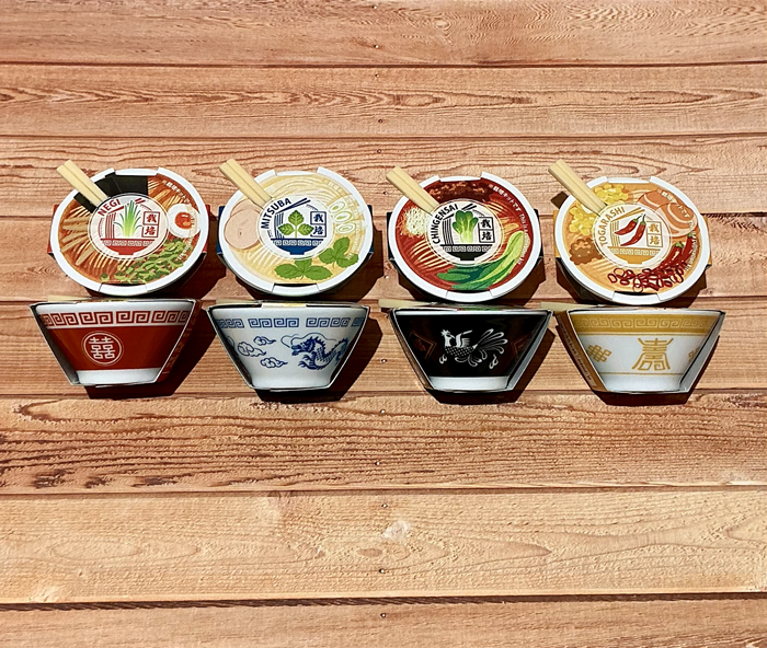 手のひらに収まるミニサイズの陶器のラーメン丼で4種類それぞれのパッケージのラーメンにぴったりな薬味を栽培する事ができます。