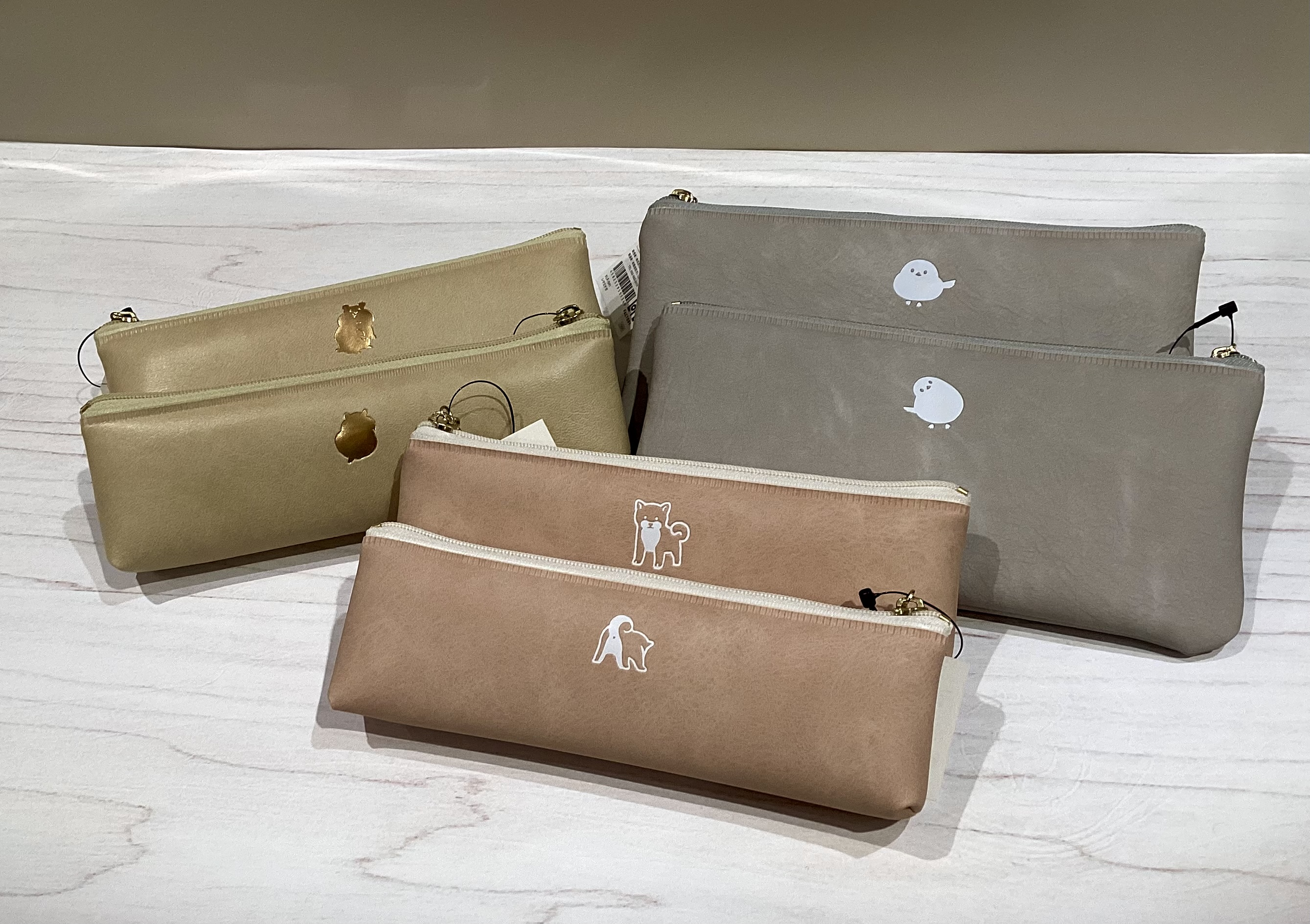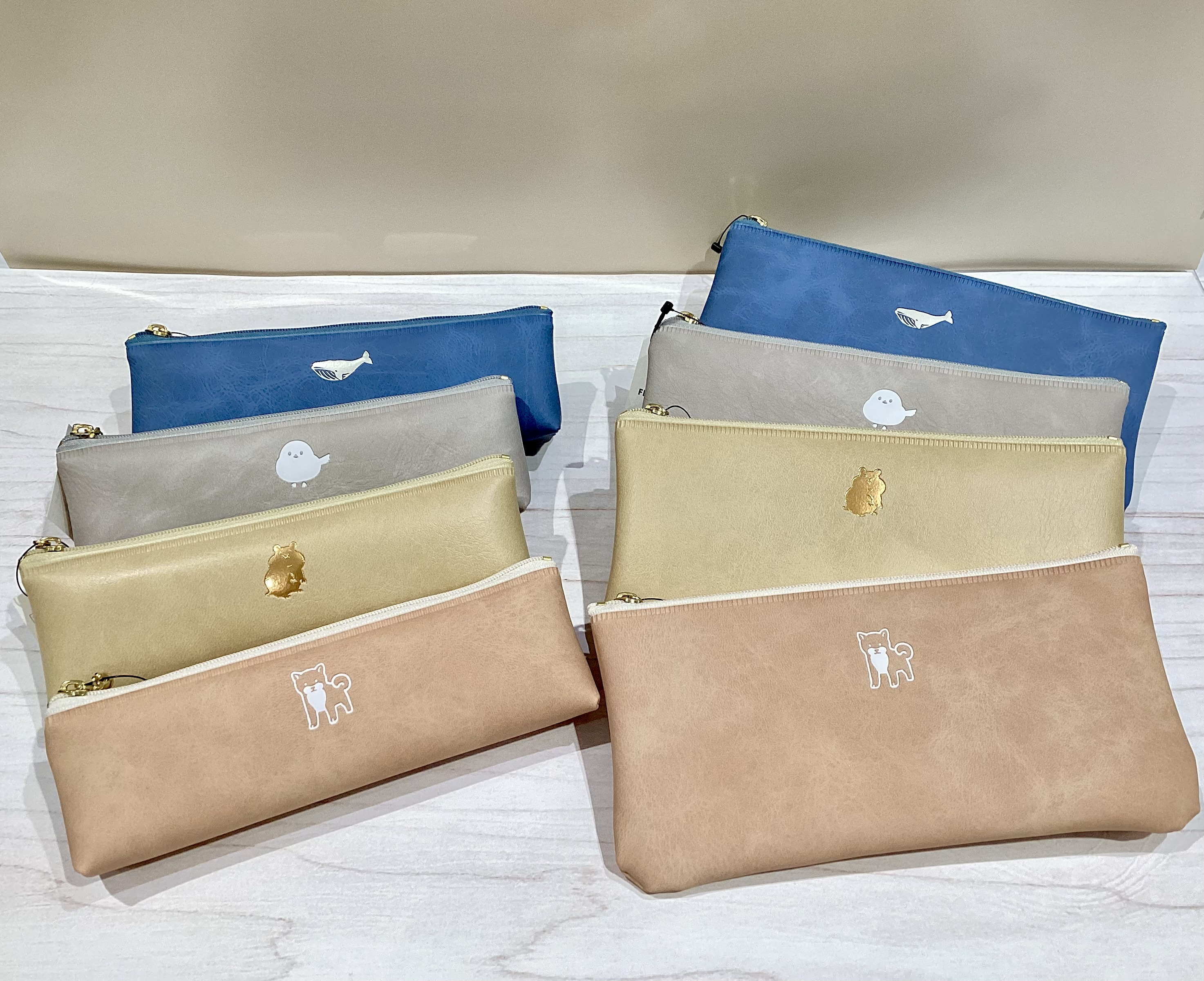 マチがある小型タイプと少し大きめのフラットタイプがあり、前者は少量の筆記具を持ち歩きたい方に、後者はたくさん入れたい方におすすめです。