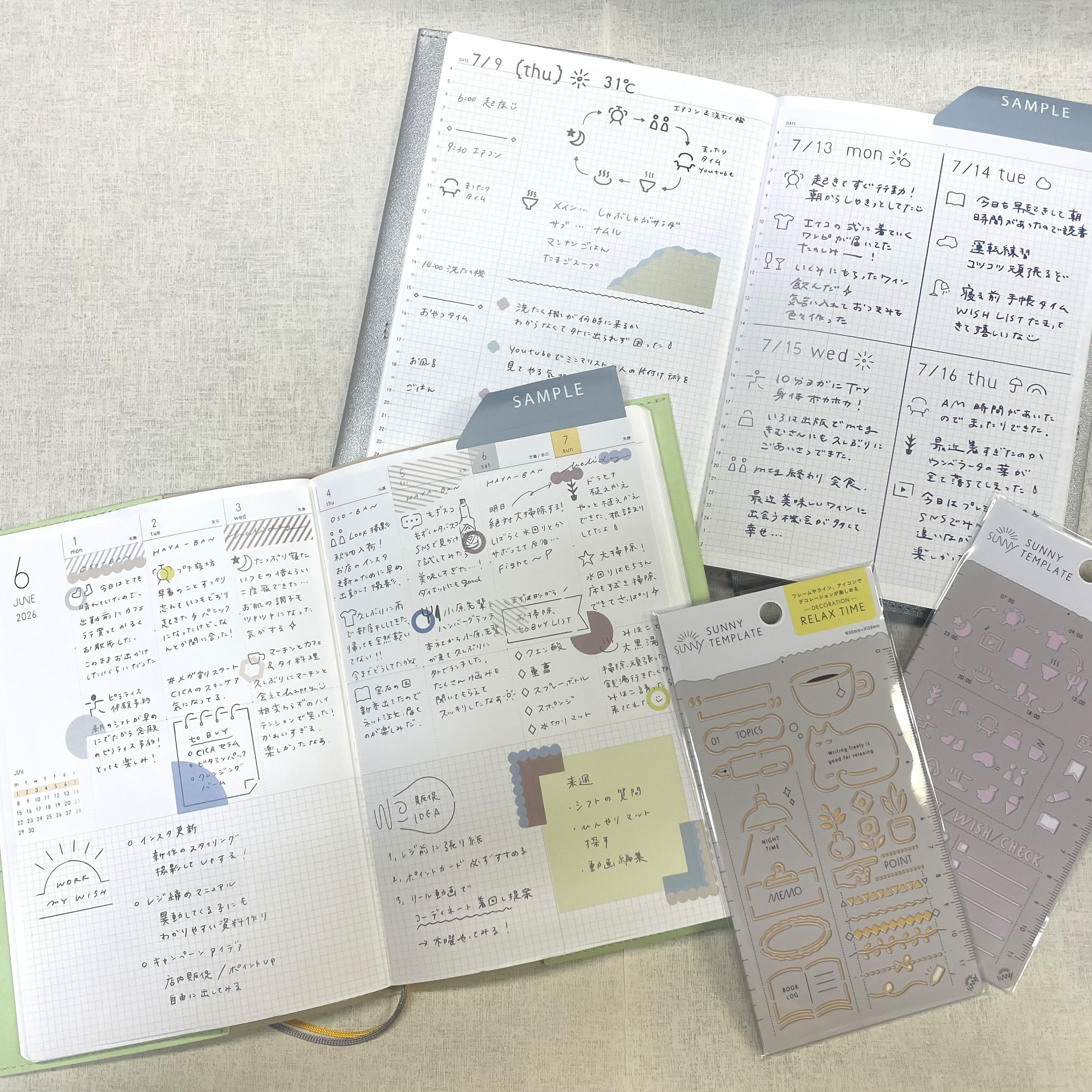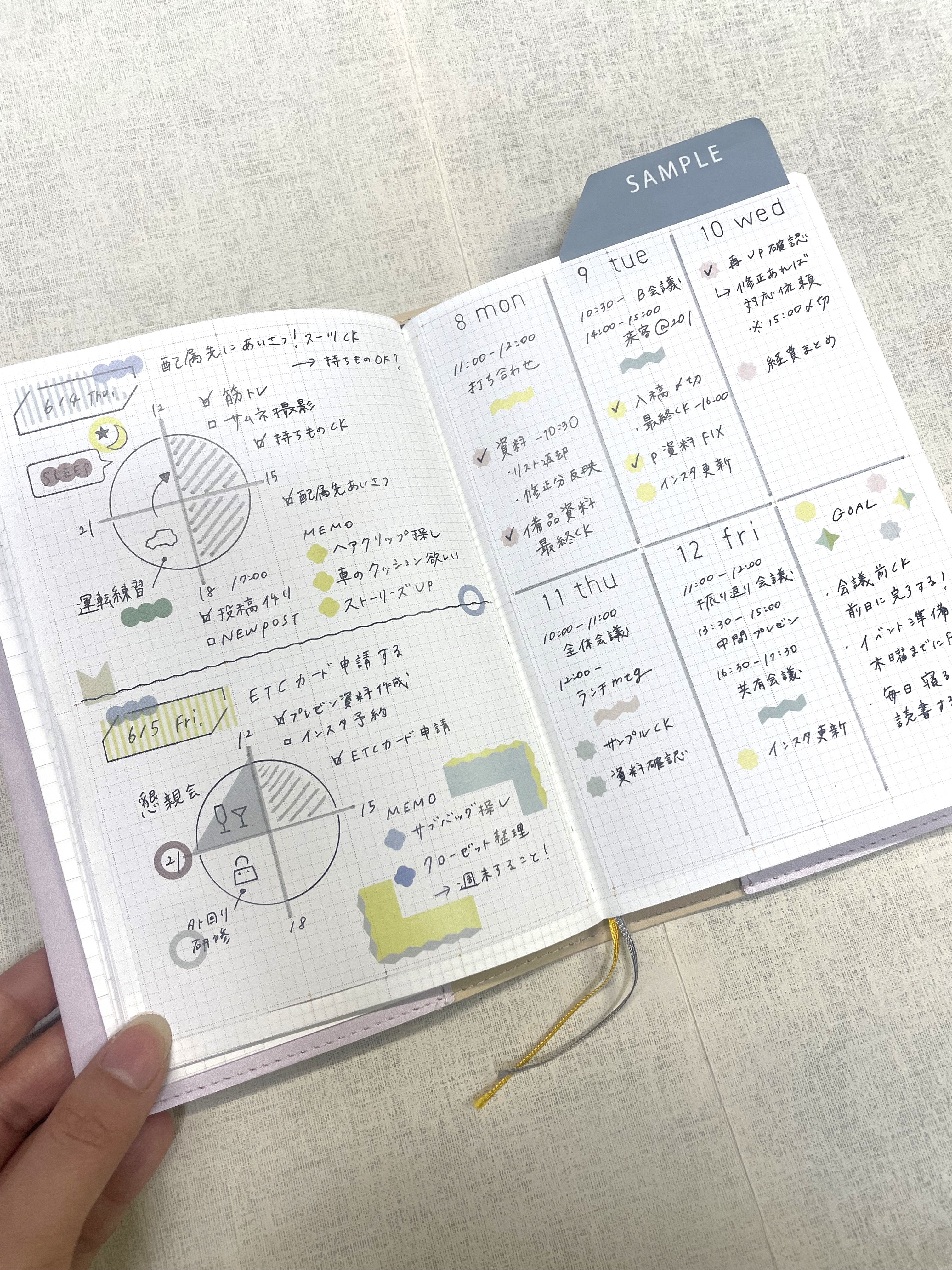 かわいらしい色やデザインが人気の「SUNNY手帳」の春ダイアリー。スケジュールページ以外にも、やりたいことリストやTODO、豊富なノートページなど、コンテンツが盛りだくさんです。自由度の高いレイアウトで、自分らしい使い方を楽しみましょう。