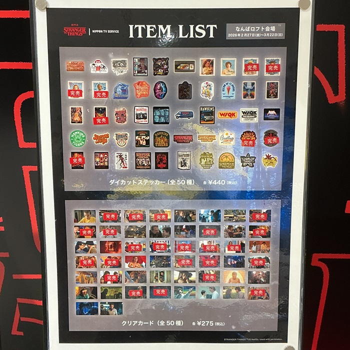 「Stranger Things LIMITED STORE 」お品書き品切れ情報