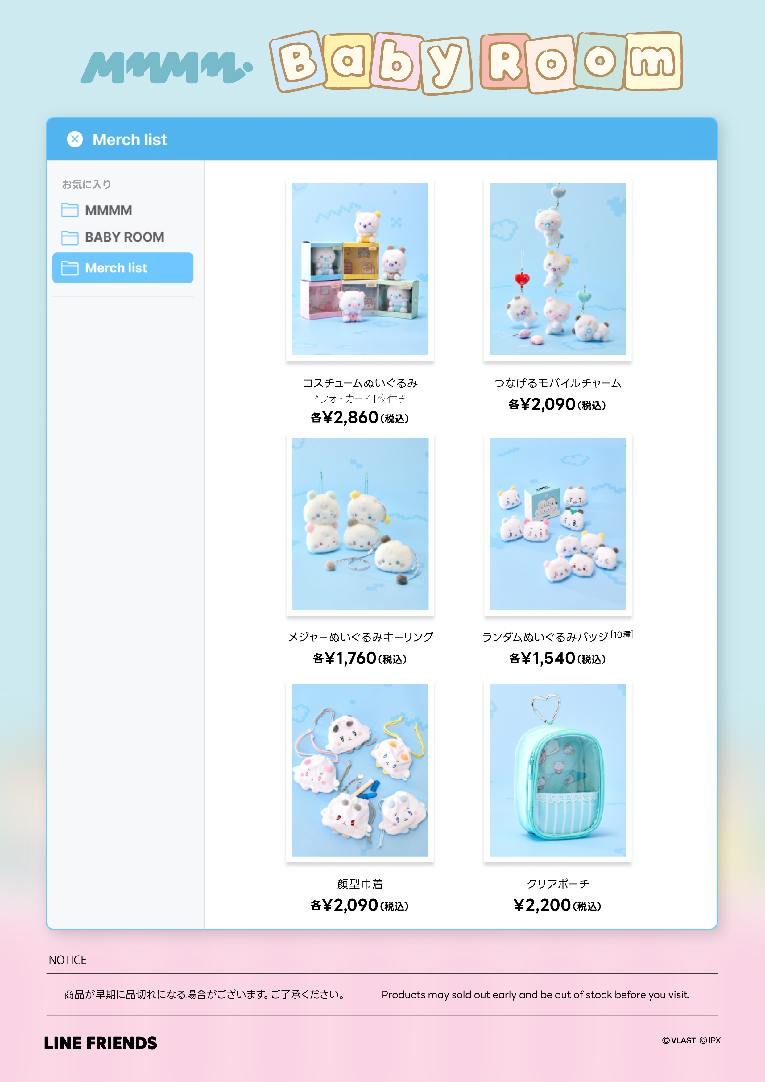ぬいぐるみやチャーム、キーリングなどベビーになったムメミムたちのかわいい商品が登場します。