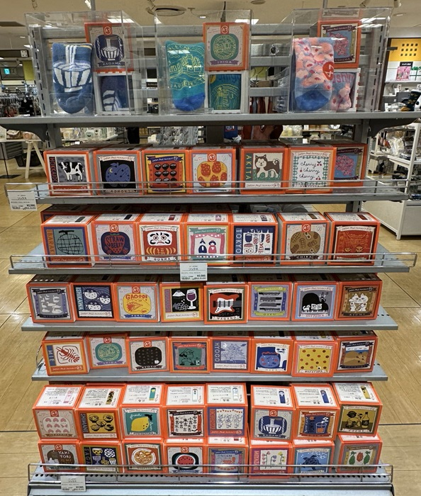 ハンカチやソックス、ニットバッグなど普段使いしやすいアイテムに、各都道府県の名所や特産品がデザインされています。