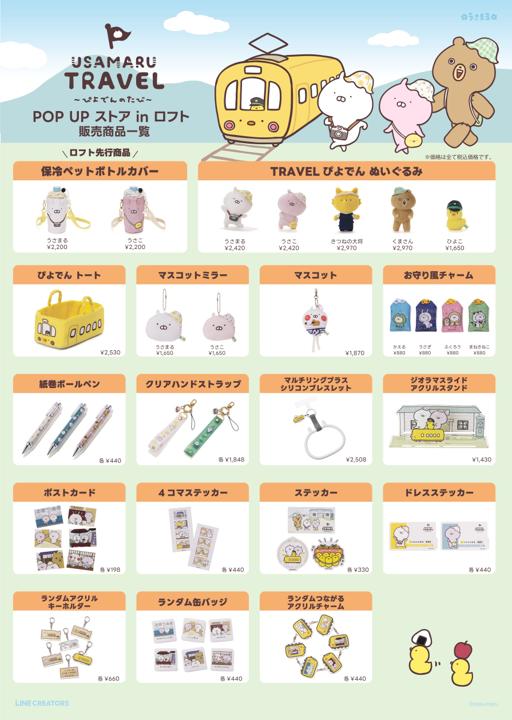 LINEスタンプで人気のキャラクター「うさまる」の新シリーズ、「うさまるトラベル~ぴよでんのたび~」のPOP UPを期間限定で開催!