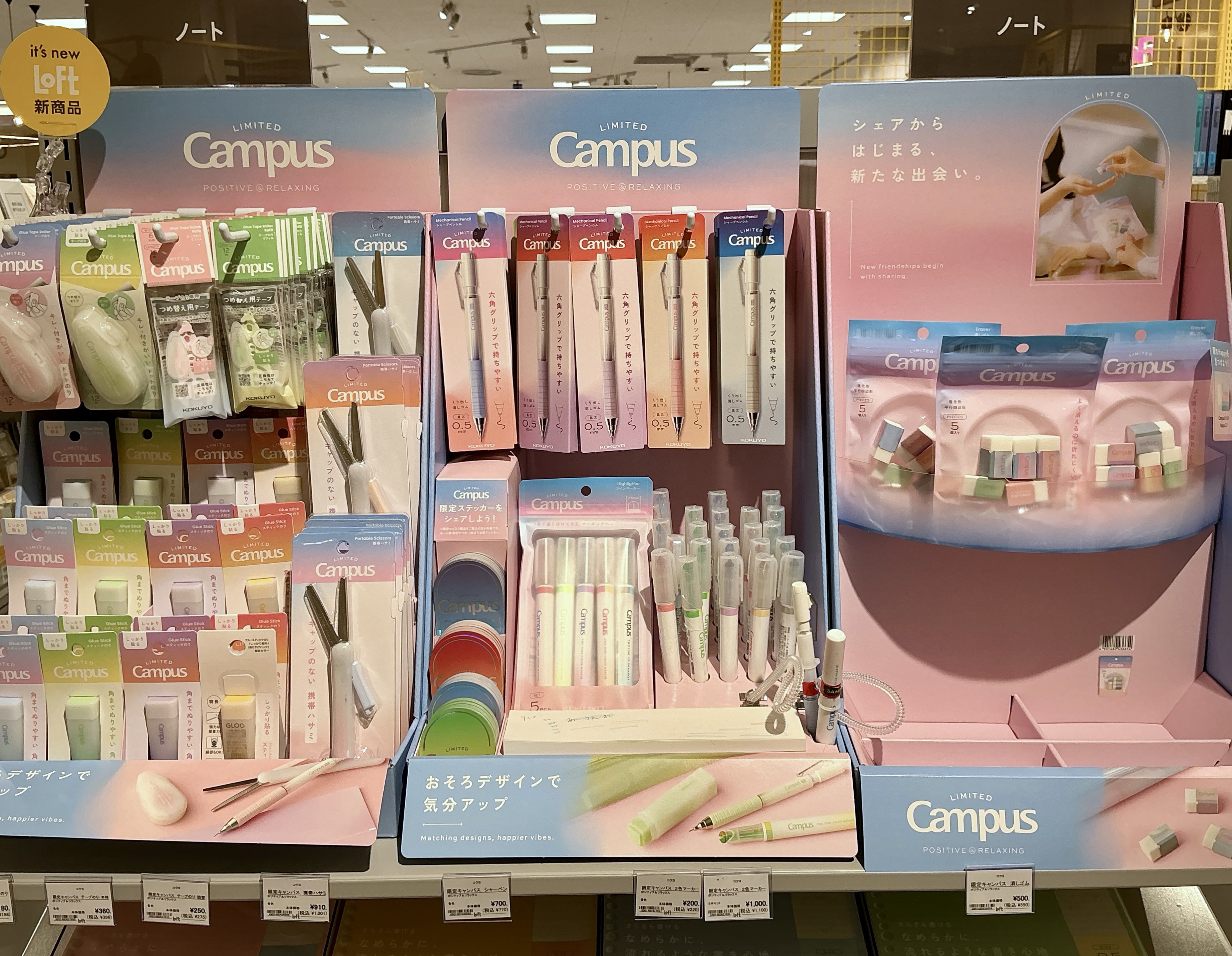 また、限定商品をご購入の方には、Campus限定ステッカーも配布しています。ノートや持ち物に貼って、自分らしくアレンジしたり、友達とシェアして楽しむこともできます。