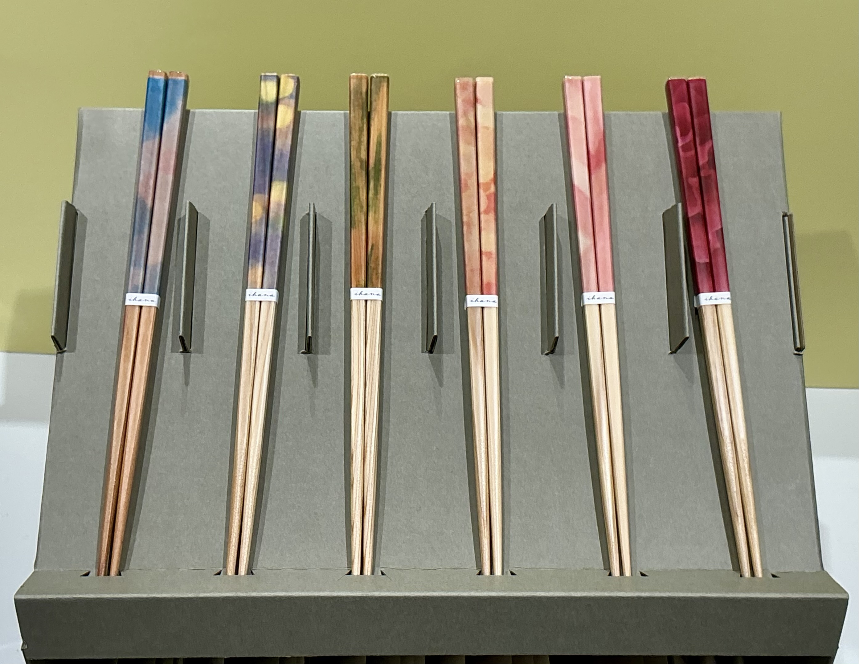 春に使いたいとても軽いお箸をご紹介いたします。ihana(イハナ)は、福井県の伝統工芸『若狭塗り箸』の技法で間伐材を使用して作られたお箸です。鮮やかな色使いで食卓が明るくなります。食洗機対応です。