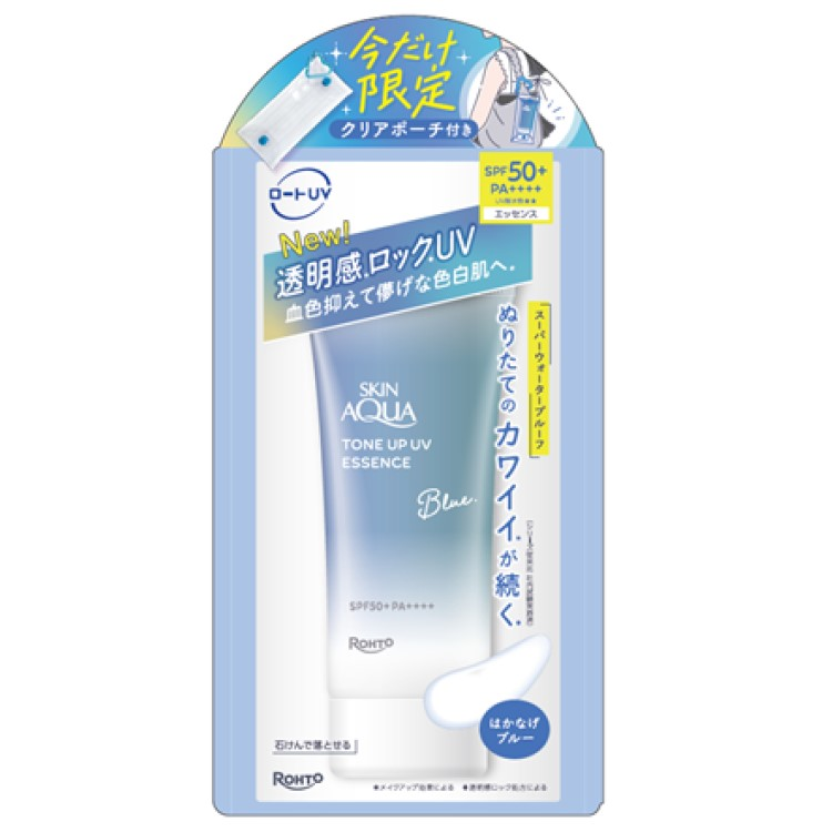 色味ごとにさまざまな肌悩みをカバーする人気の日焼け止め「スキンアクア トーンアップUVエッセンス」より、クリアポーチ付きが数量限定で登場しました。
