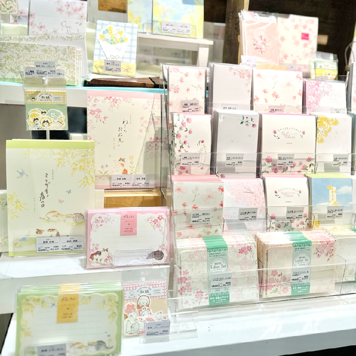 文具売場では、質感が優しい和紙を使用した便箋や、温かみのあるタッチで春の花々とかわいらしい猫を描いたレターシリーズなど、受け取った方にも季節を感じていただける春レターを特集中です。