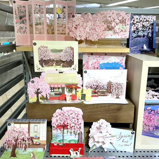 ポストカードやメッセージカードはもちろん、ポップアップカードや立体カードなどそのまま飾れるカードも人気です。