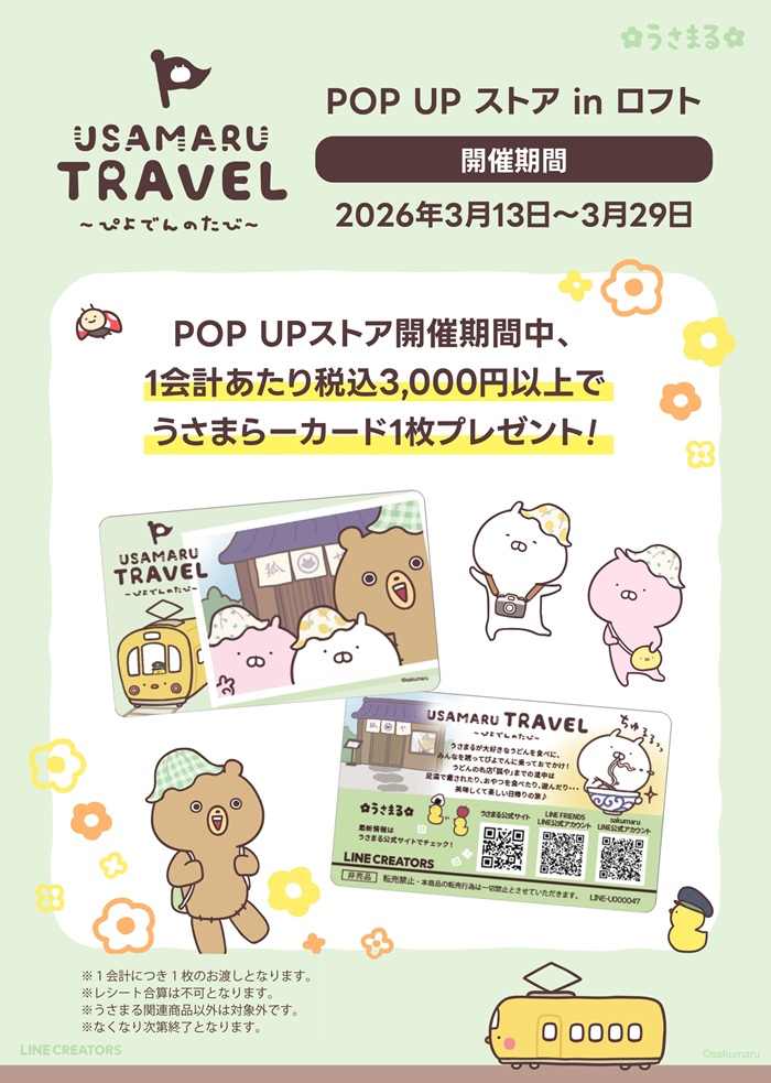 LINEスタンプで人気のキャラクター「うさまる」の新シリーズ、「うさまるトラベル~ぴよでんのたび~」のPOP UPを期間限定で開催!
