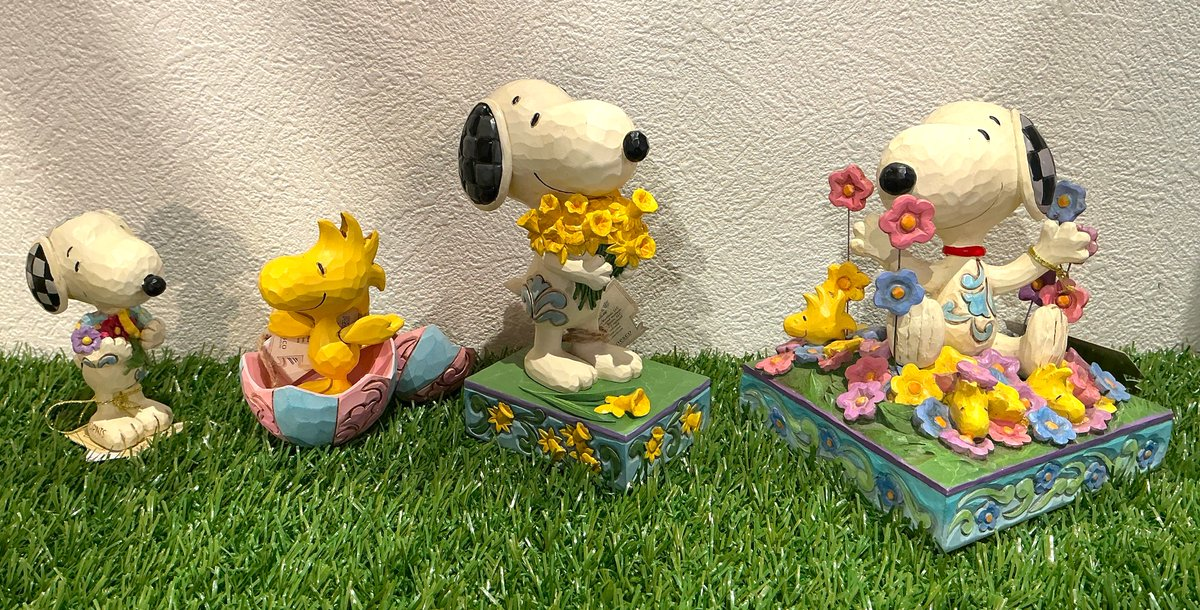 色とりどりのお花を持って嬉しそうなスヌーピーのフィギュアです。