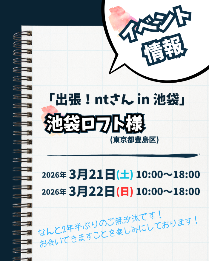 SNSや各地のイベントで大人気のセーラー万年筆販売員・nt氏が来店。万年筆の深い知識はもちろん、独自の視点で選ばれた「書くことが楽しくなるアイテム」を直接ご紹介します。万年筆選びに悩んでいる方も、インク沼の住人も、ぜひこの機会にnt氏との対話をお楽しみください。