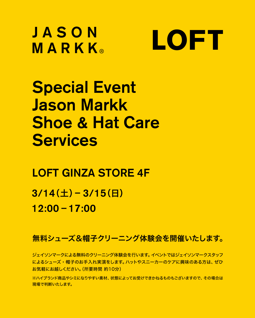 そんなジェイソンマーク専門スタッフによるクリーニングを実際に体験していただける【JASON MARKK】クイッククリーニングサービスを下記の日程で開催いたします。