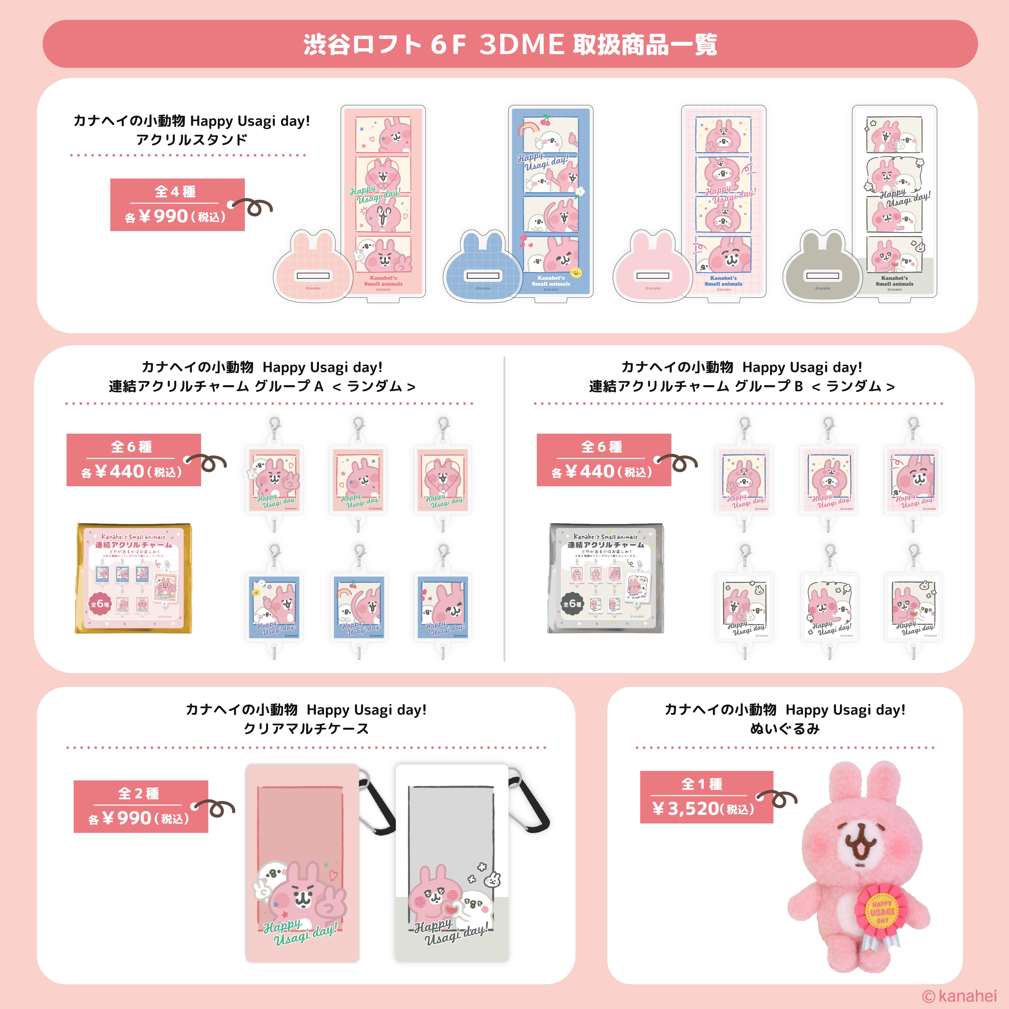 ゆるっとほっこりな小動物ワールド「カナヘイの小動物」。おちゃらけうさぎと、生真面目な鳥のピスケのコンビ「ピスケとうさぎ」。そのうさぎの誕生日を記念したアイテムを、6階 3DMEにて期間限定で販売します。