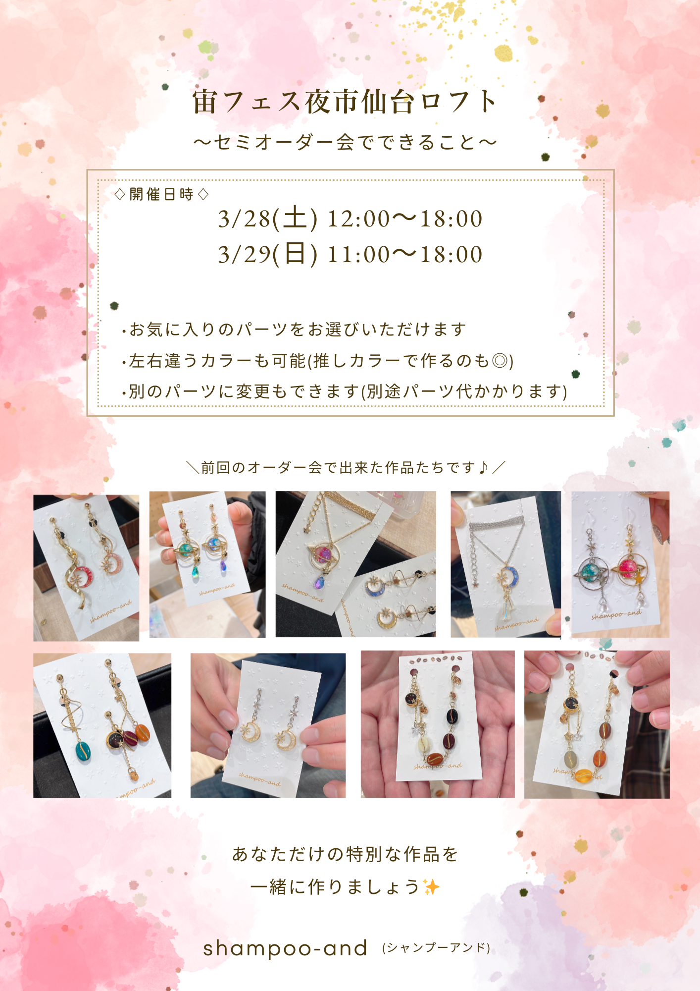 当日は人気の「星月夜ネックレス」や「星月夜耳飾り」イヤカフのオーダーもOKです!ぜひご参加ください。