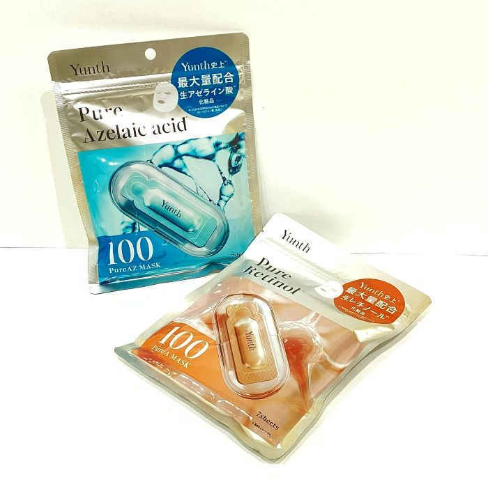 Yunthの生美容液から着想を得た、生美容液シートマスクです。ラインナップは、肌悩みに合わせてお選びいただける3種類。Yunthの美容液を代表するピュアビタミン、ピュアレチノール、ピュアアゼライン酸です。
