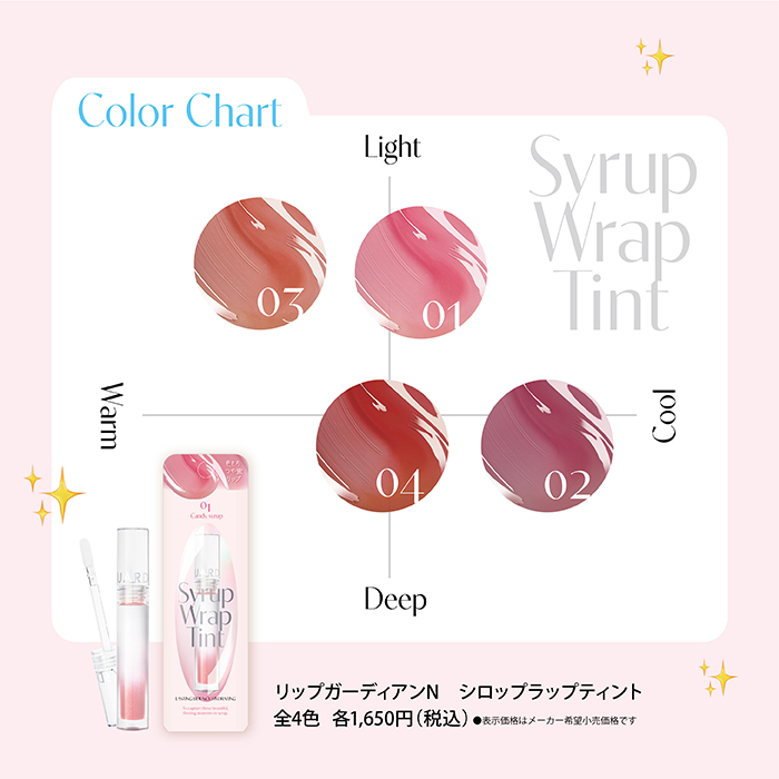 リップガーディアンN シロップラップティント 全4色 1,500円 (税込 1,650円)