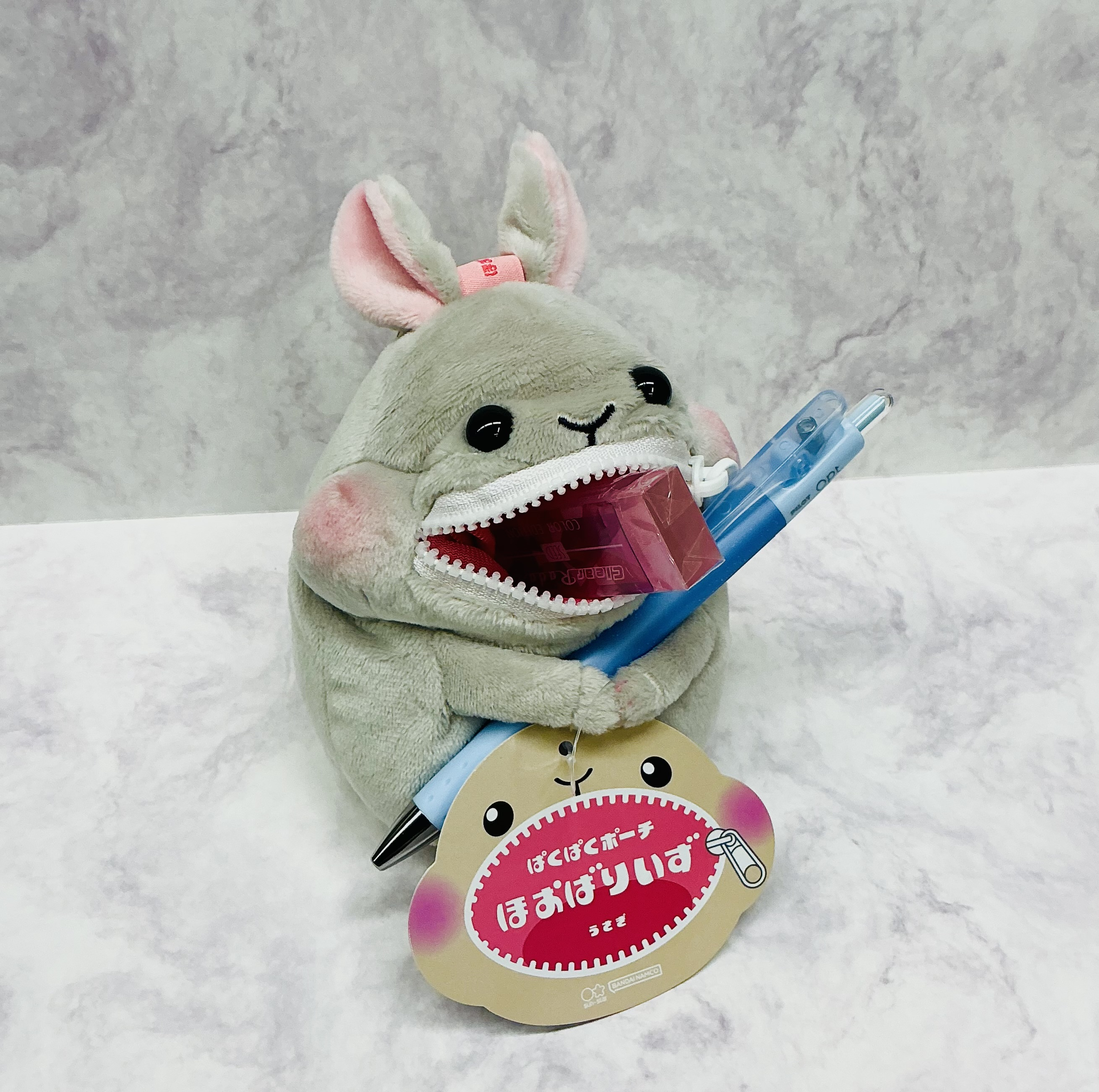 ぬいぐるみの手の間にはペンを握らせてペン立てにしたり、丸形のカラビナがついているのでバッグにつけても可愛いです。