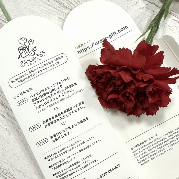 お花は、ローズ・ガーベラ・カーネーションよりお好きな1本をチョイス。