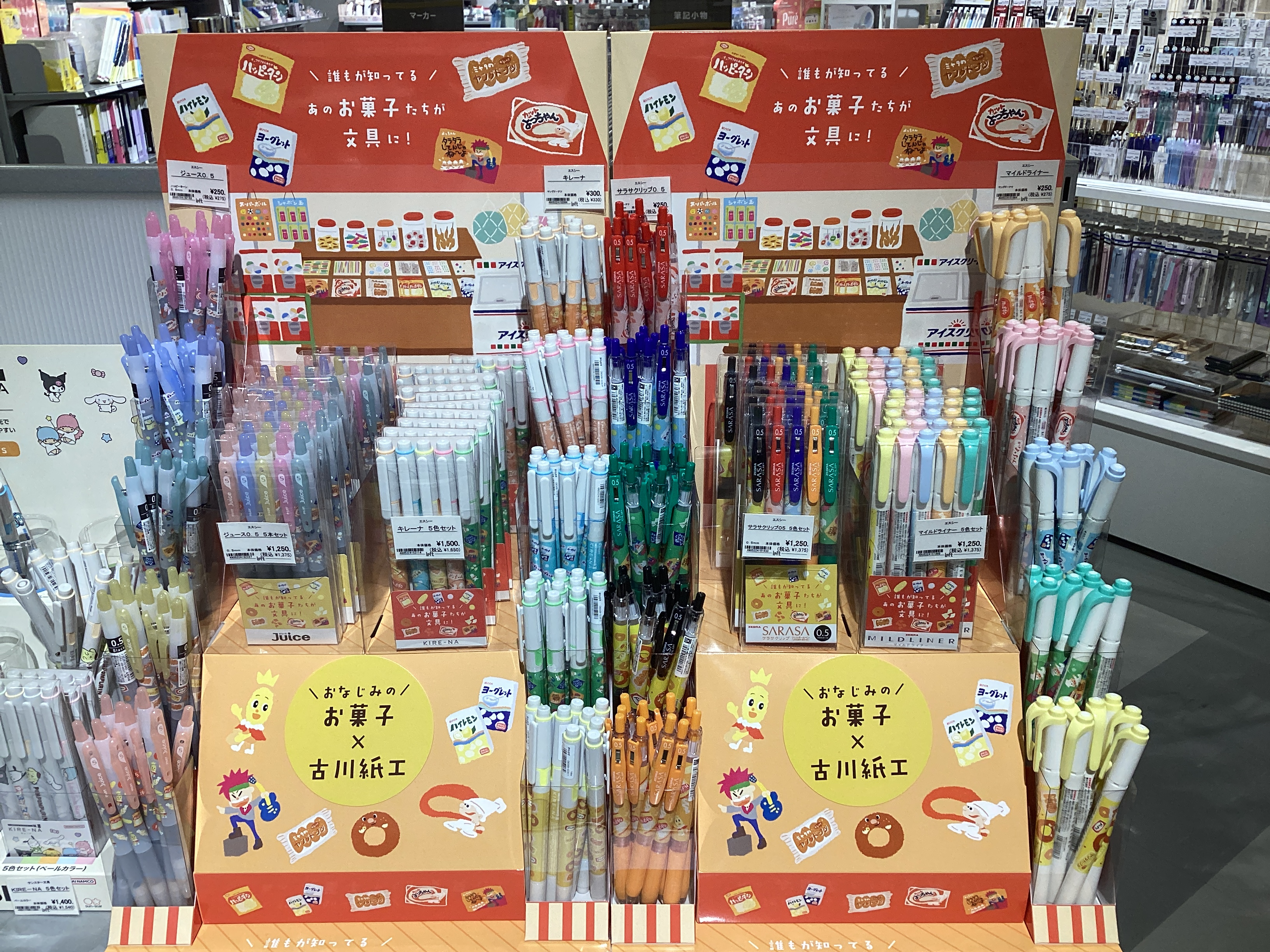 ペンの種類は、ゼブラの『サラサクリップ』と『マイルドライナー』、パイロットの『ジュース』と『キレーナ』。それぞれのイメージに合わせたカラーでの展開です。