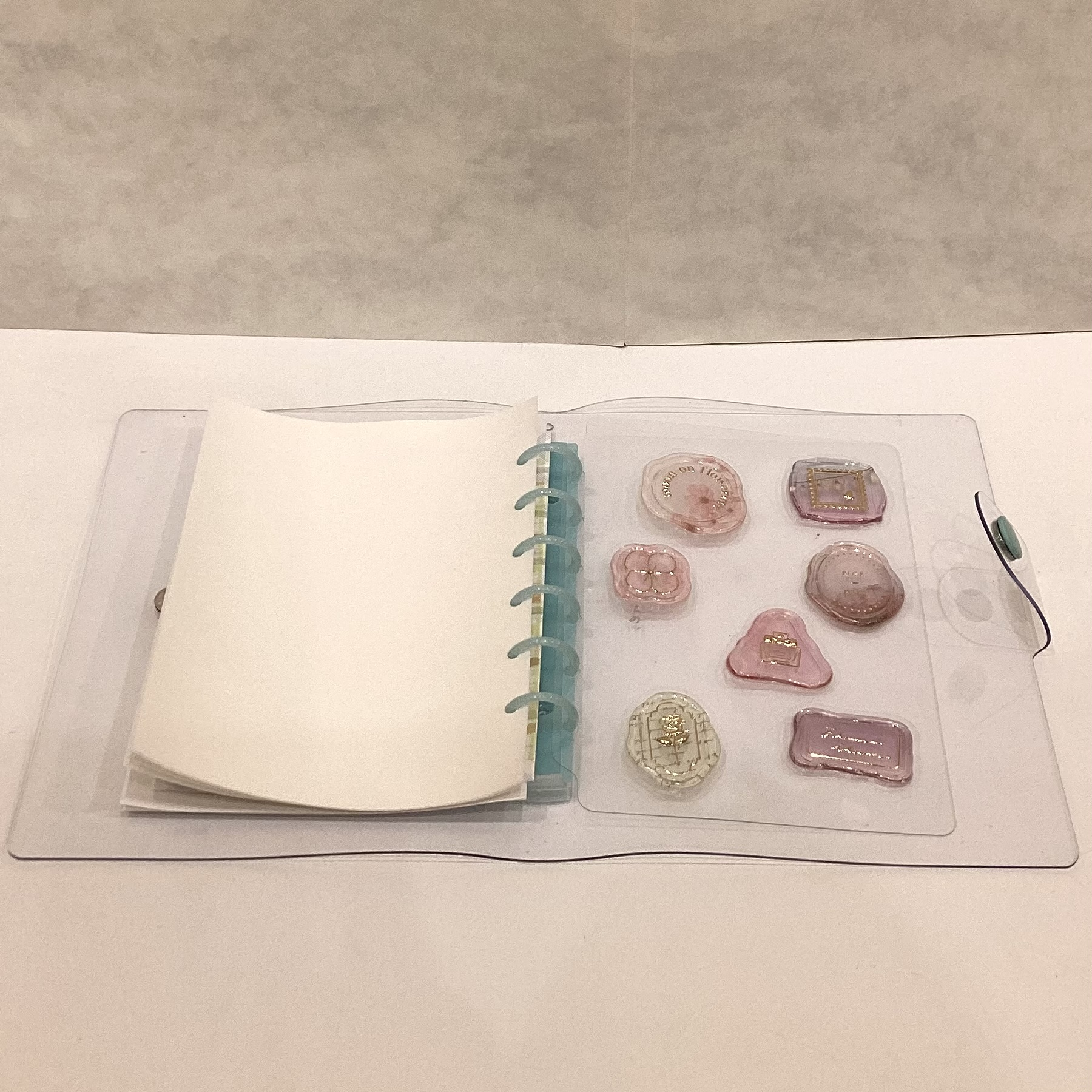 バインダーはA6サイズでスライダー式なので、台紙が取り外ししやすいのが特徴です。またシール台紙と透明シートが入っており、透明シートでは透明シールを活かしてコレクションが楽しめます。
