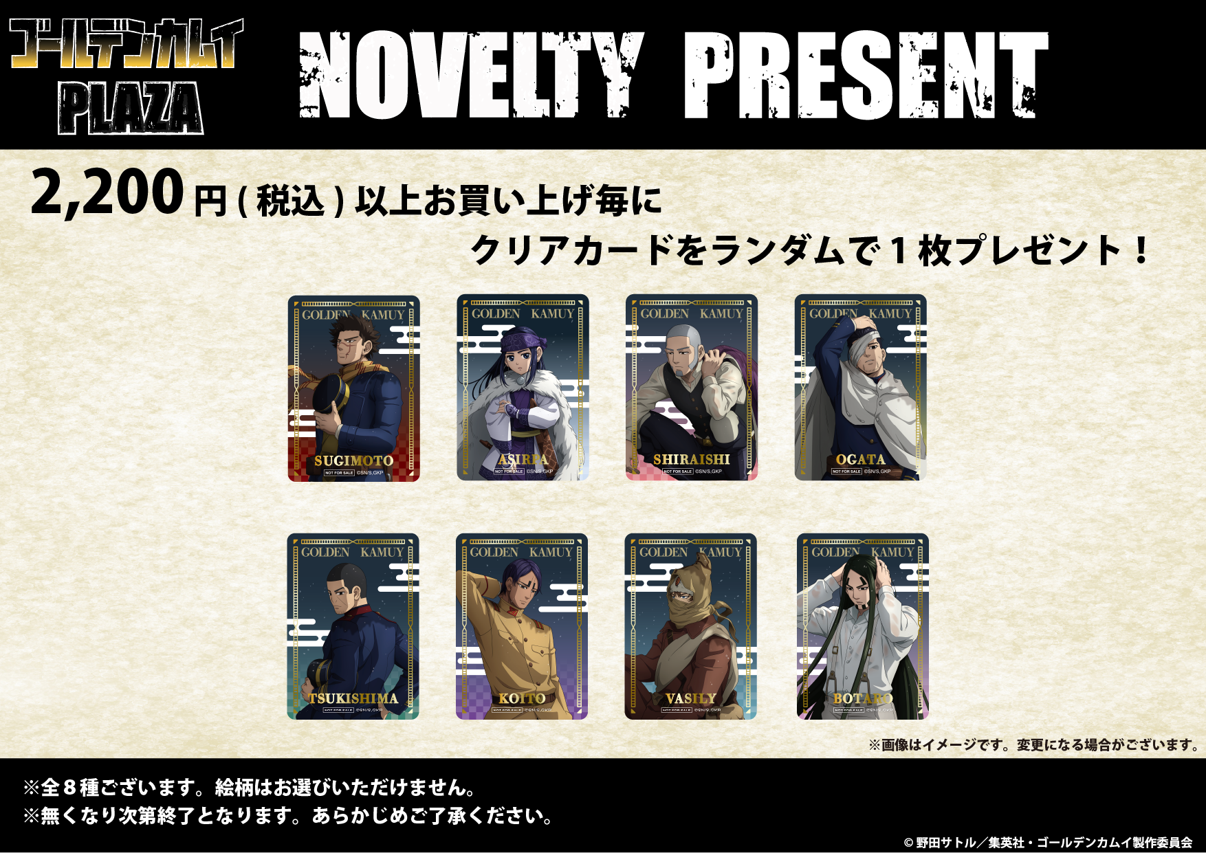 会場では新ビジュアルを使用したゴールデンカムイPLAZA限定アイテムをはじめ、等身大パネルやお買上げプレゼントもご用意いたしております。