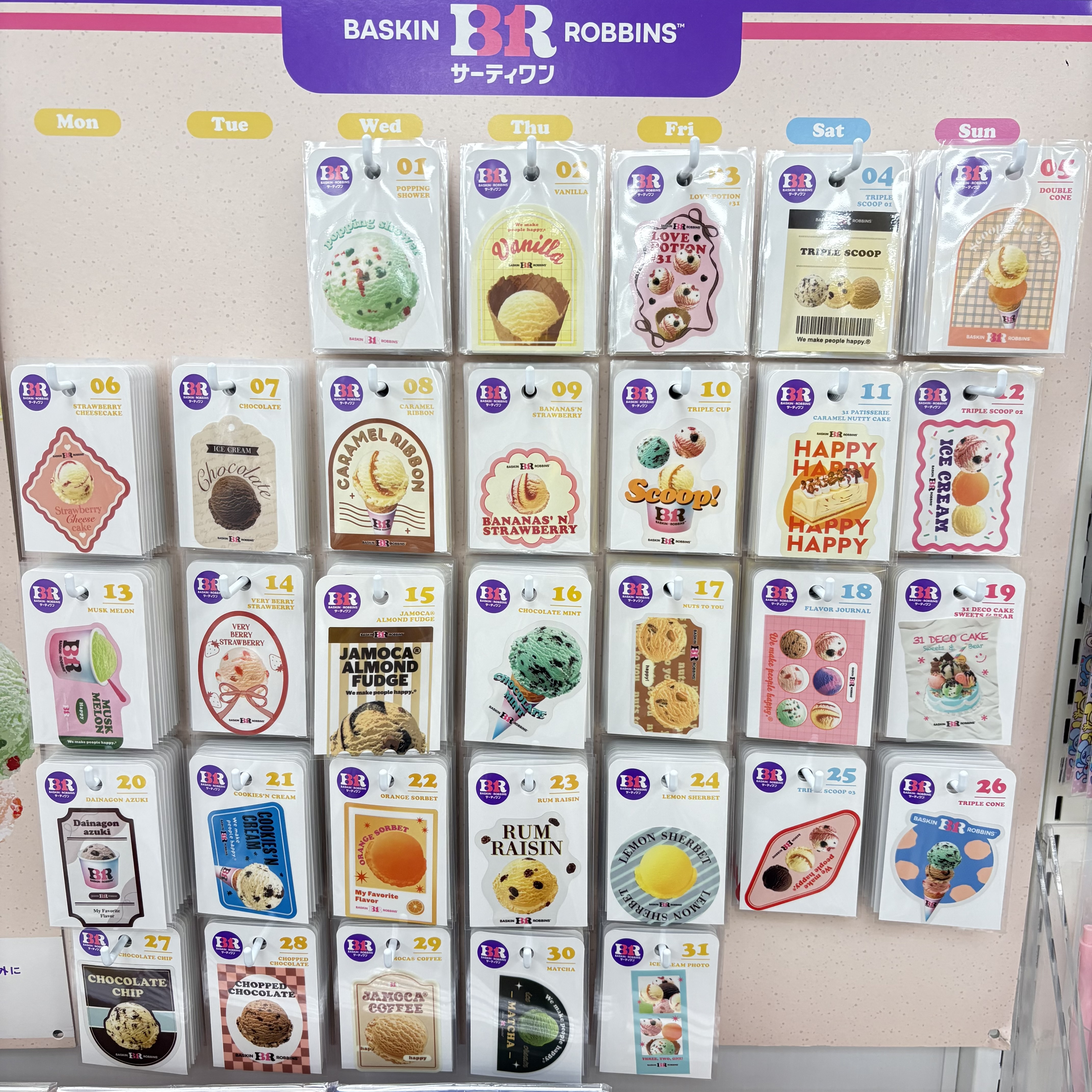 『31日、毎日違ったフレーバーを』というコンセプトのもと、31種類のフレーバーを展開するサーティワンアイスクリームとコラボしたステッカーが登場しました!お気に入りのフレーバーは見つかりましたか?生まれた日のフレーバーは何でしたか?ぜひ売り場で探してみてください!