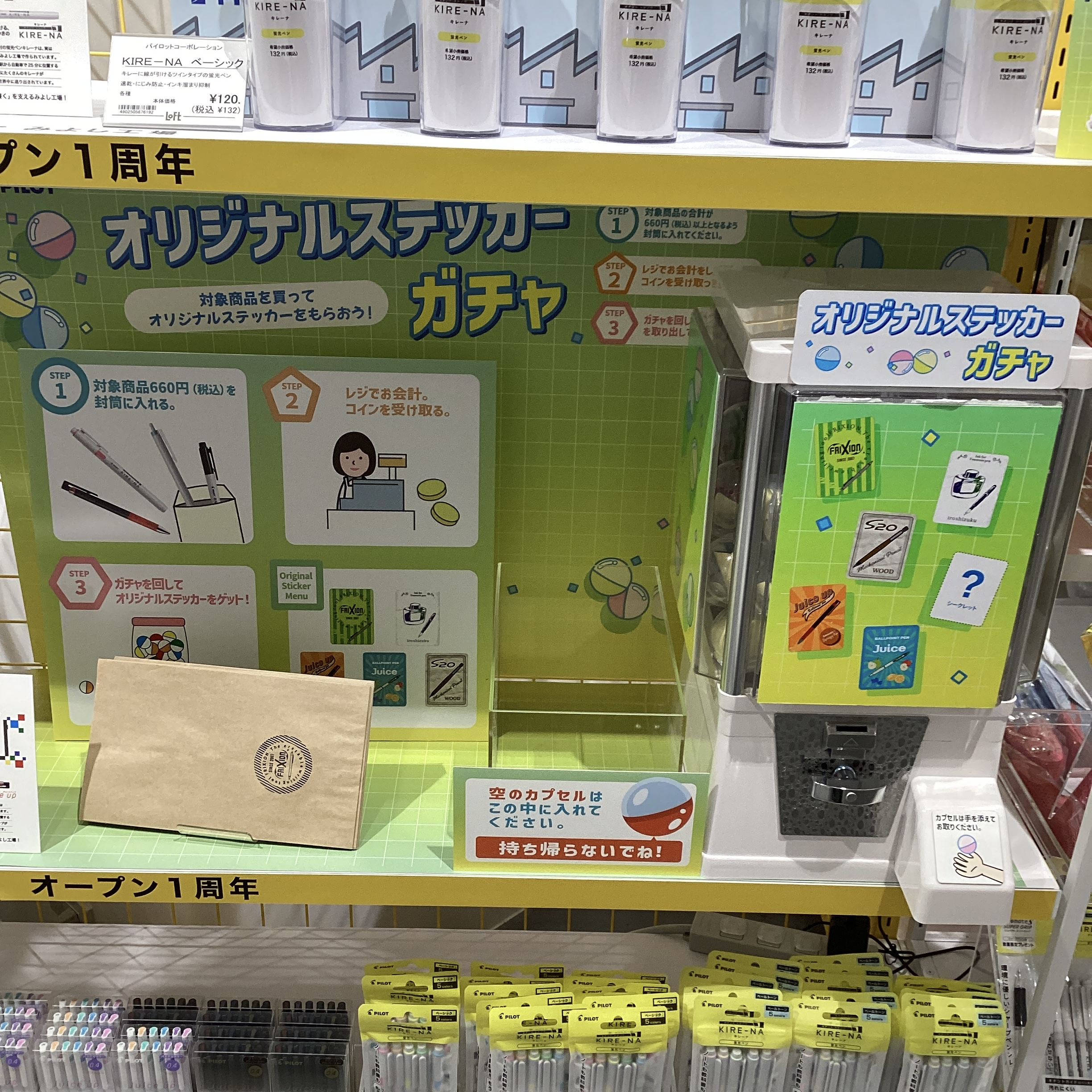 今回、愛知県みよし市のパイロットインキ株式会社みよし工場とコラボして、みよし工場で製造されている「おすすめのペン」ゲルインキボールペンの「juice+」や人気の蛍光ペン「KIRE-NA」などを取りそろえ、期間限定の販売会を開催いたします。