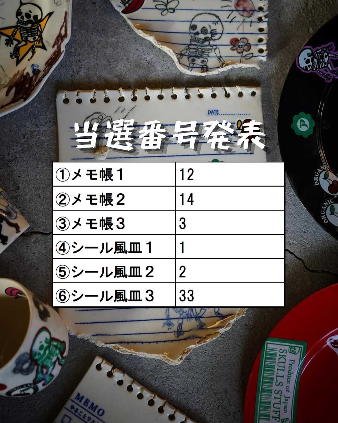 ⑥シール風皿3・・・当選番号「33」
