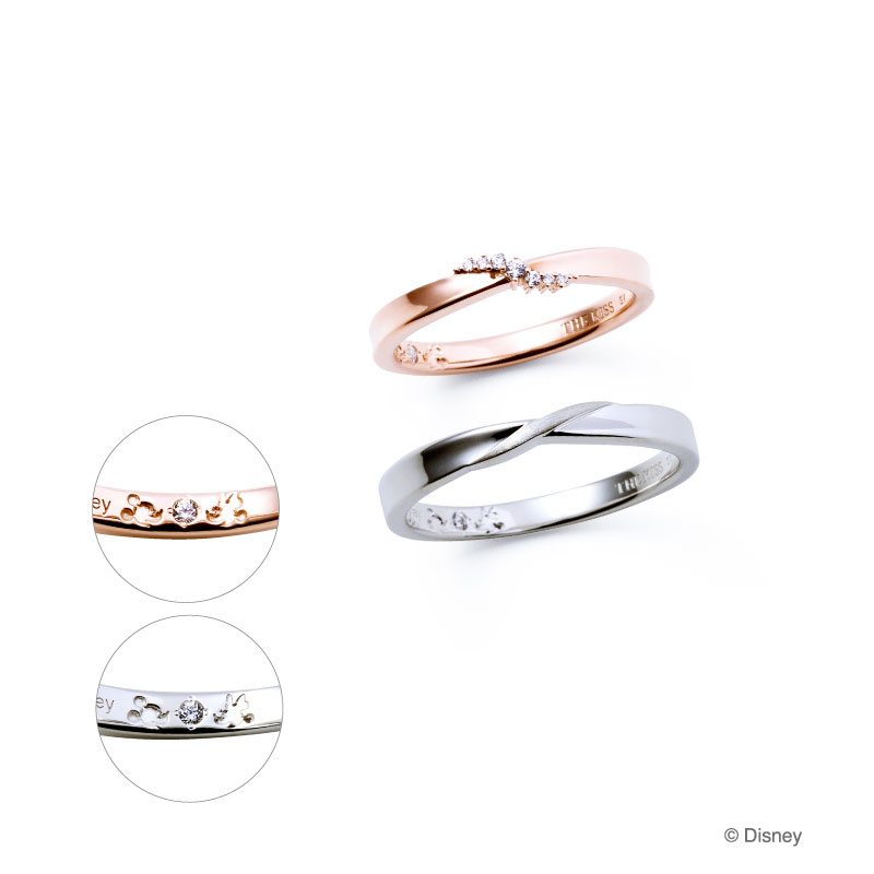 リングの内側には、”ミッキー”と”ミニー”が見つめ合っているシルエットをこっそりデザイン。