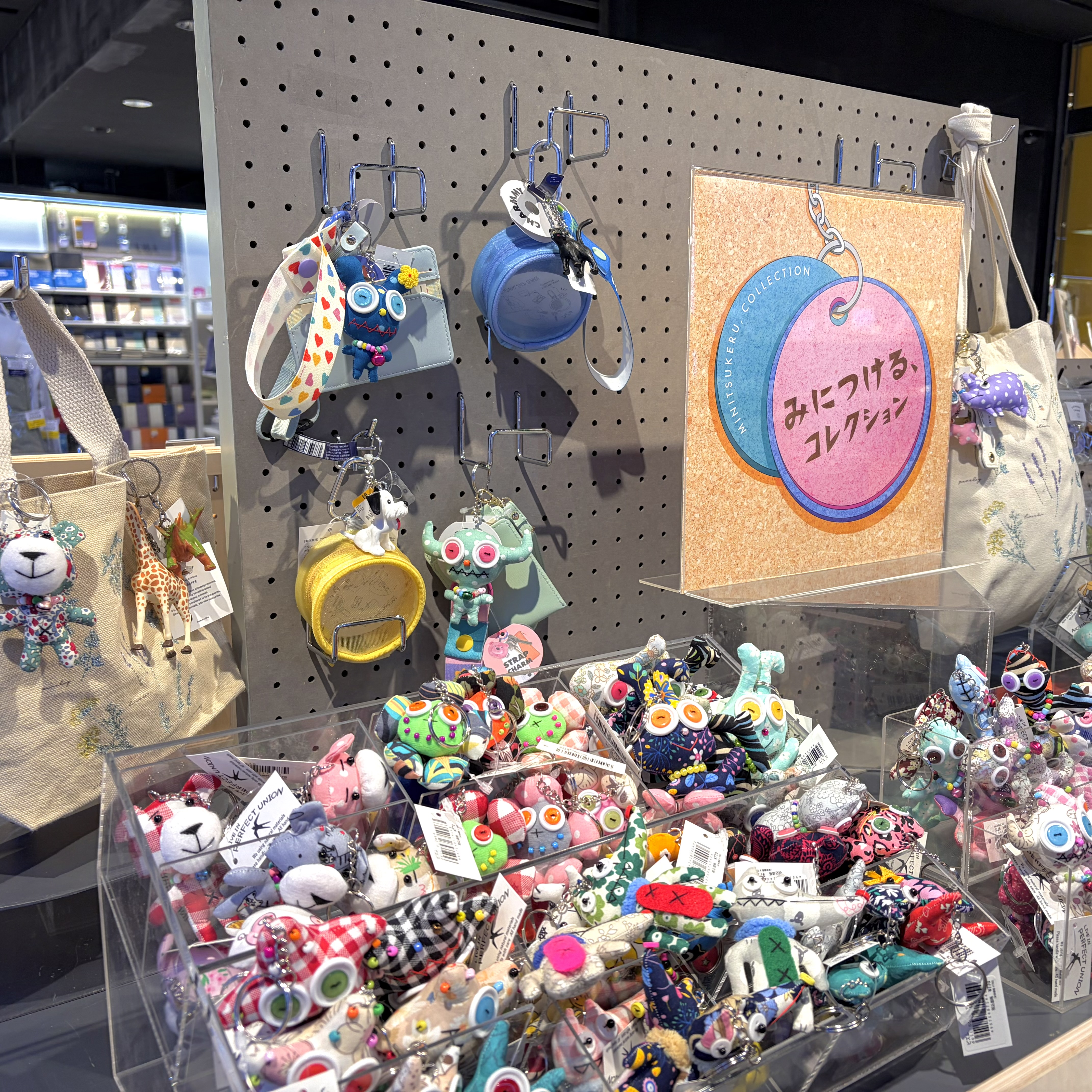 身のまわりのものにつけて楽しめる、たくさんのキーホルダーを集めた「みにつける、コレクション」。普段持ち運ぶバッグ・ポーチ・カギなどにつけて、日常に自分色をプラスしてみてはいかはですか。動物のキーホルダー「ピズム」は、1点1点異なる布とビーズを使って作られており、自分だけのお気に入りが見つかるはずです。ぜひ店頭で見つけてみてください。