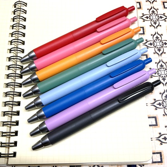 ゲルインクを使用しており、書き心地はサラサラとしていてとてもなめらか。本体と同じ色のインクは替え芯もご用意しております。