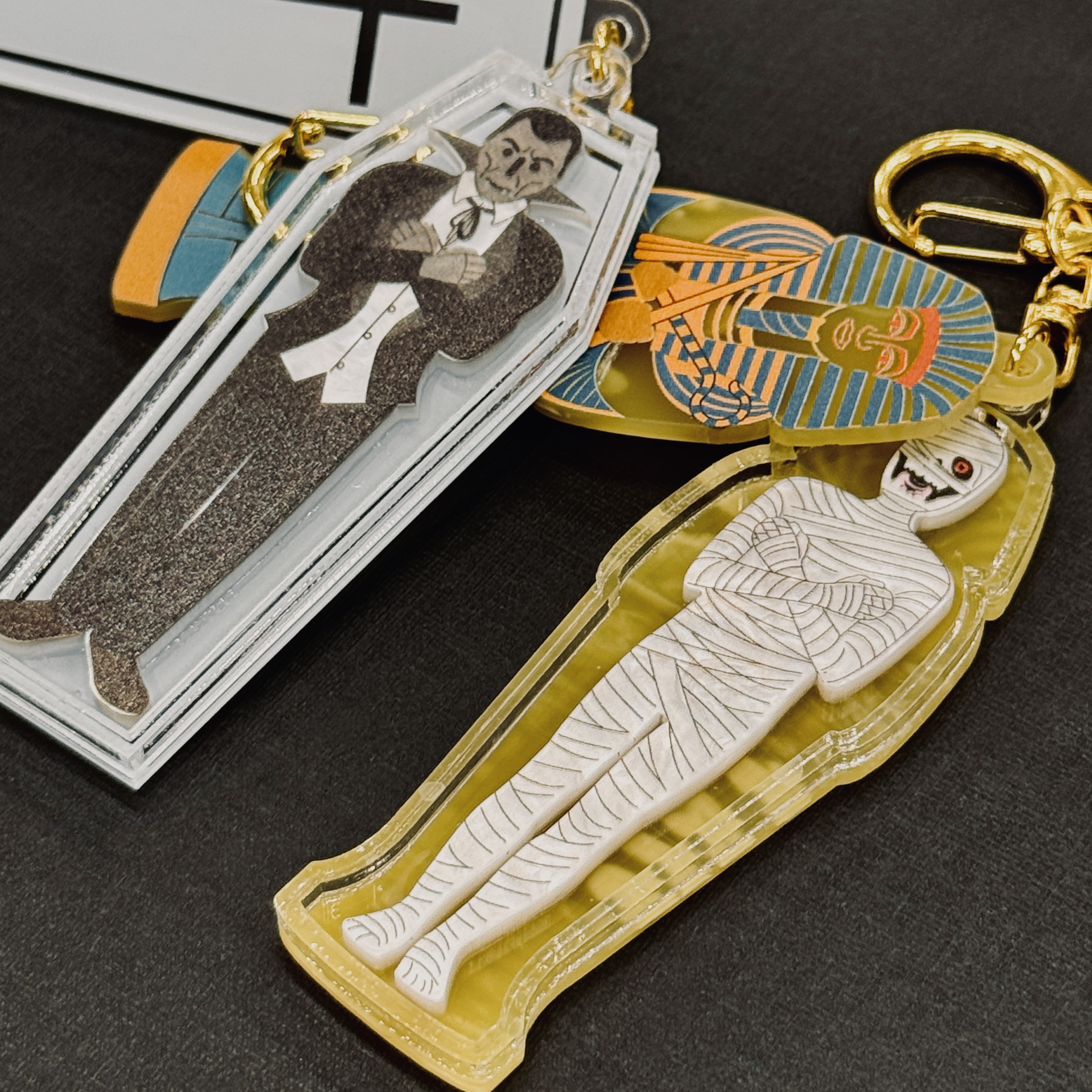 キーホルダーはそれぞれギミック付きで、どれもユニークなデザイン。カバンにつけて持ち歩いたり、ちょっとしたギフトにもおすすめです。