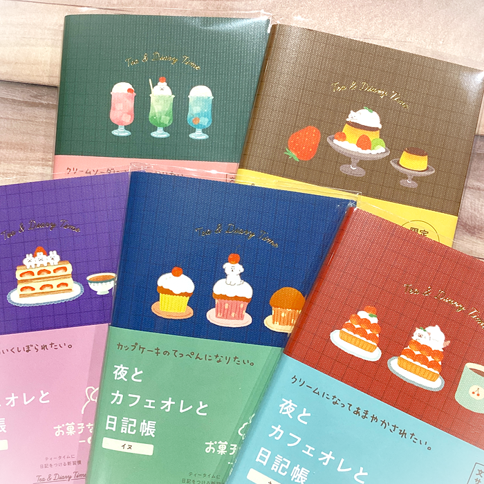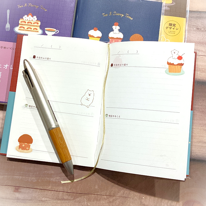 一日の終わりに『今日の振り返り』と『明日やること』を数行書き出して、気持ちや考えを整理し、さっぱりと身軽に明日を迎える為にも、日記をつける新習慣を、可愛いお菓子などうぶつ柄の日記でスタートさせてみませんか?