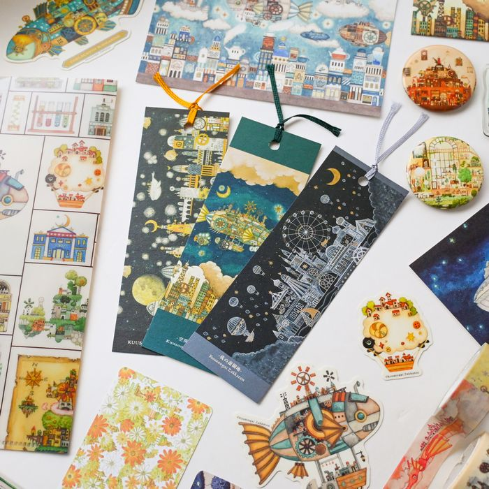 「空想の街」をテーマに、手書きで描かれた繊細で絵本のようなレトロで温かみのあるイラストは、物語を感じてワクワクしてきます。