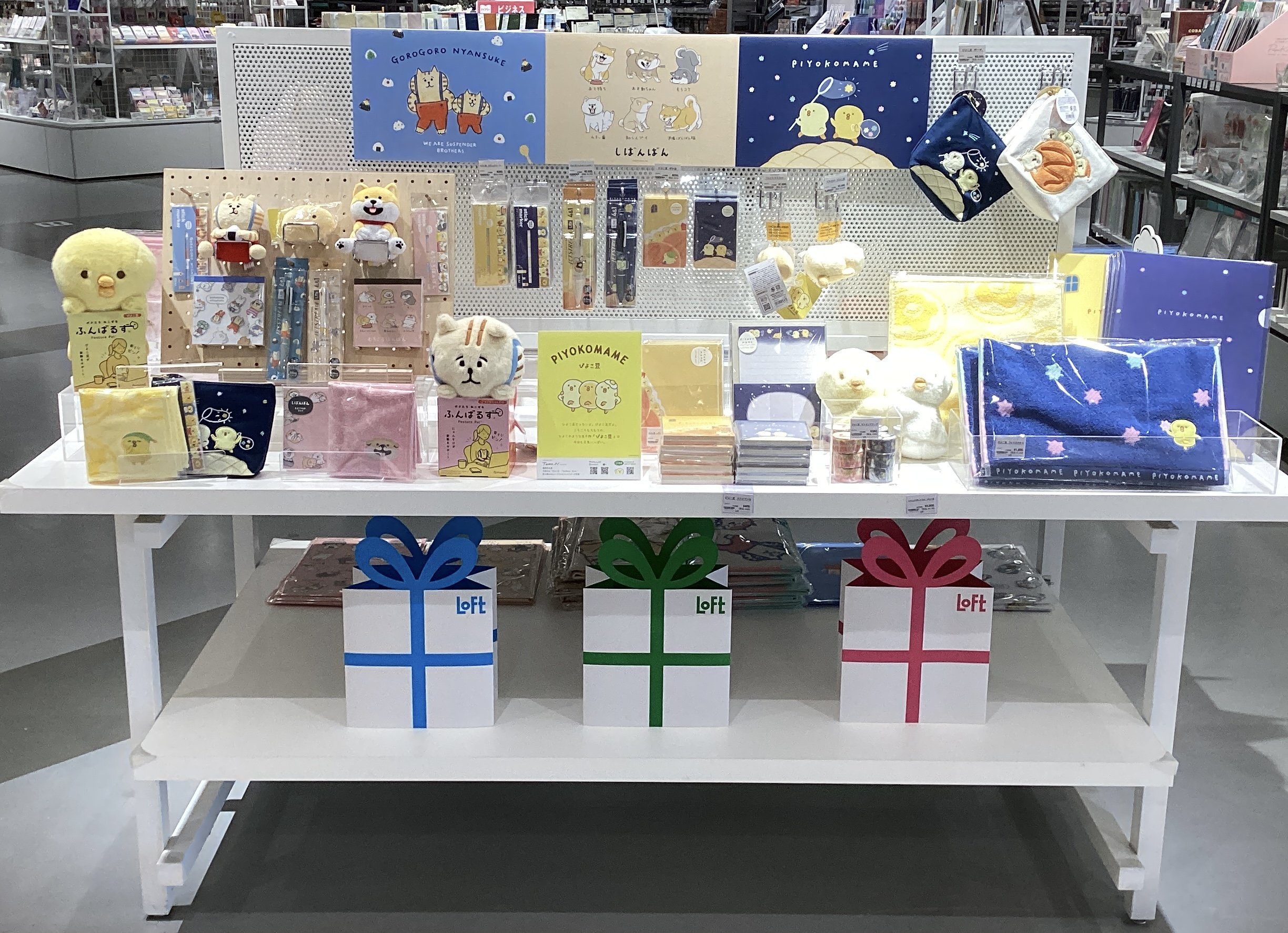 人気の『ごろごろにゃんすけ』『しばんばん』『ぴよこ豆』の3キャラクターが大集合!