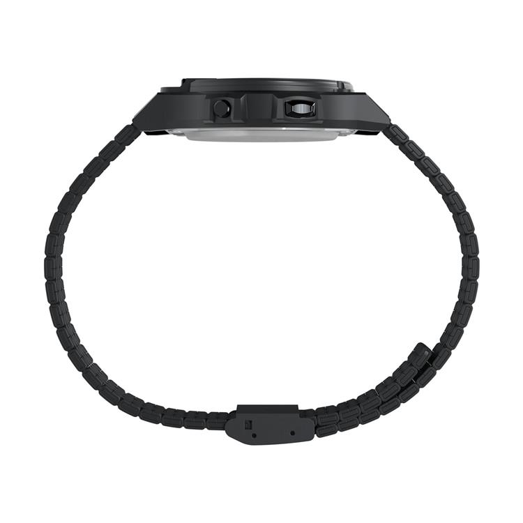 オールブラックのケースに細かいサイズ調整が可能なスライドアジャスターのステンレススチールブレスレットで、ワークシーンでもカジュアルでも使い勝手の良いデザインと仕様です。