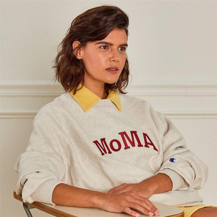 Champion(チャンピオン)の不朽の名作である、リバースウィーブ(R)のクルーネックスウェットシャツに典型的なカレッジスタイル文字の「MoMA」があしらわれたスペシャルアイテム。グレーカラーにネイビーのロゴをアップリケした象徴的なデザインは、2017年の展覧会「Items: Is Fashion Modern?」に合わせてつくられたものです。