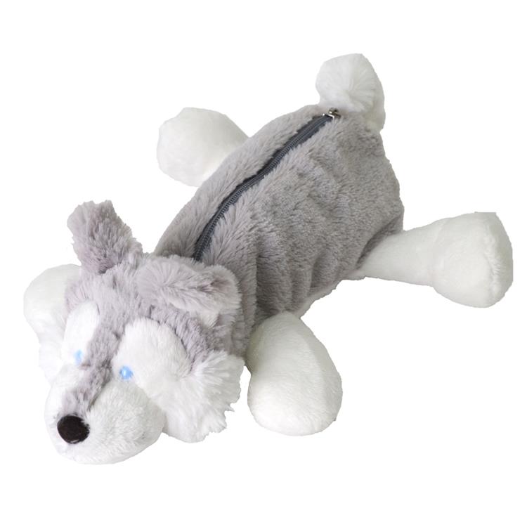 ぬいぐるみの肌触りをそのまま残したシベリアンハスキーのフィギュアポーチです。